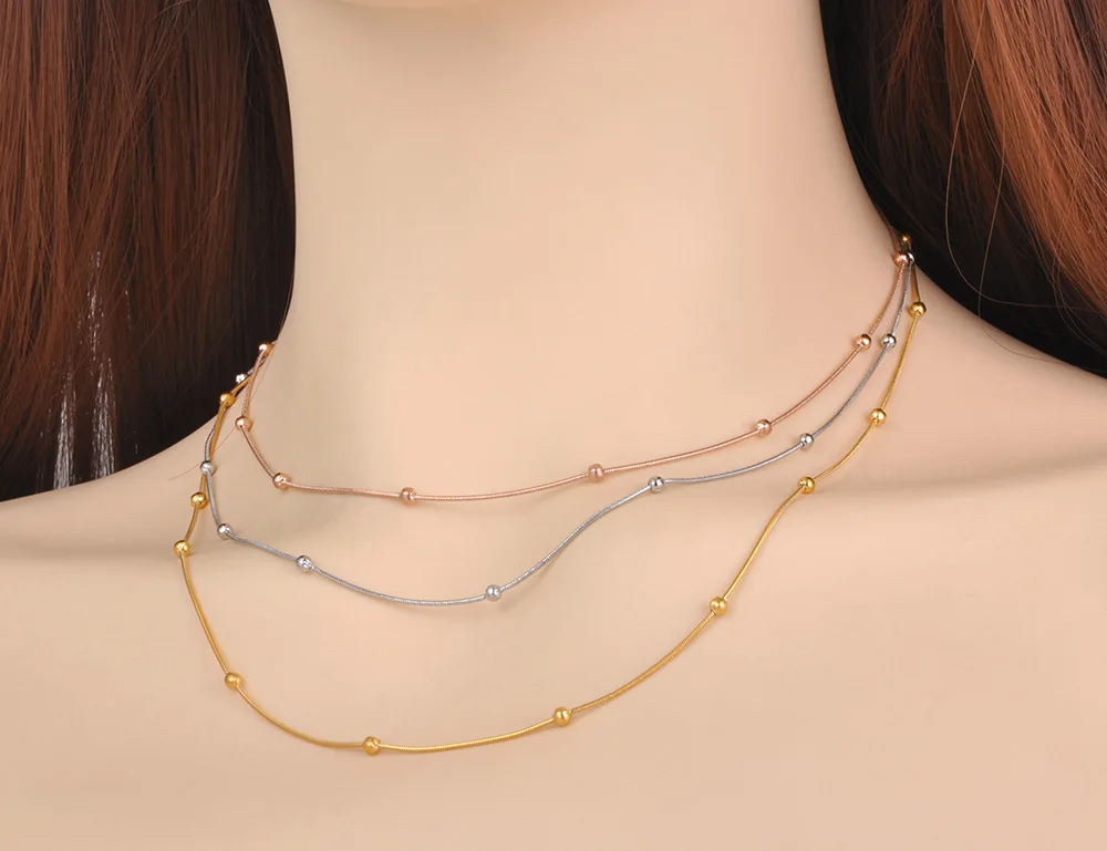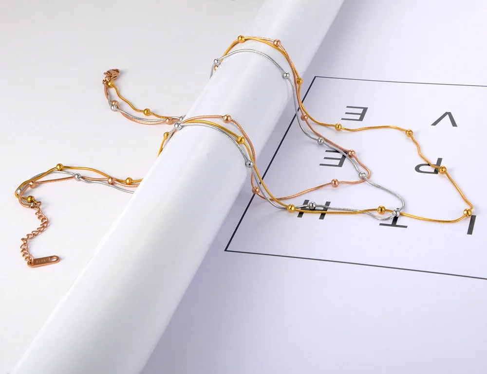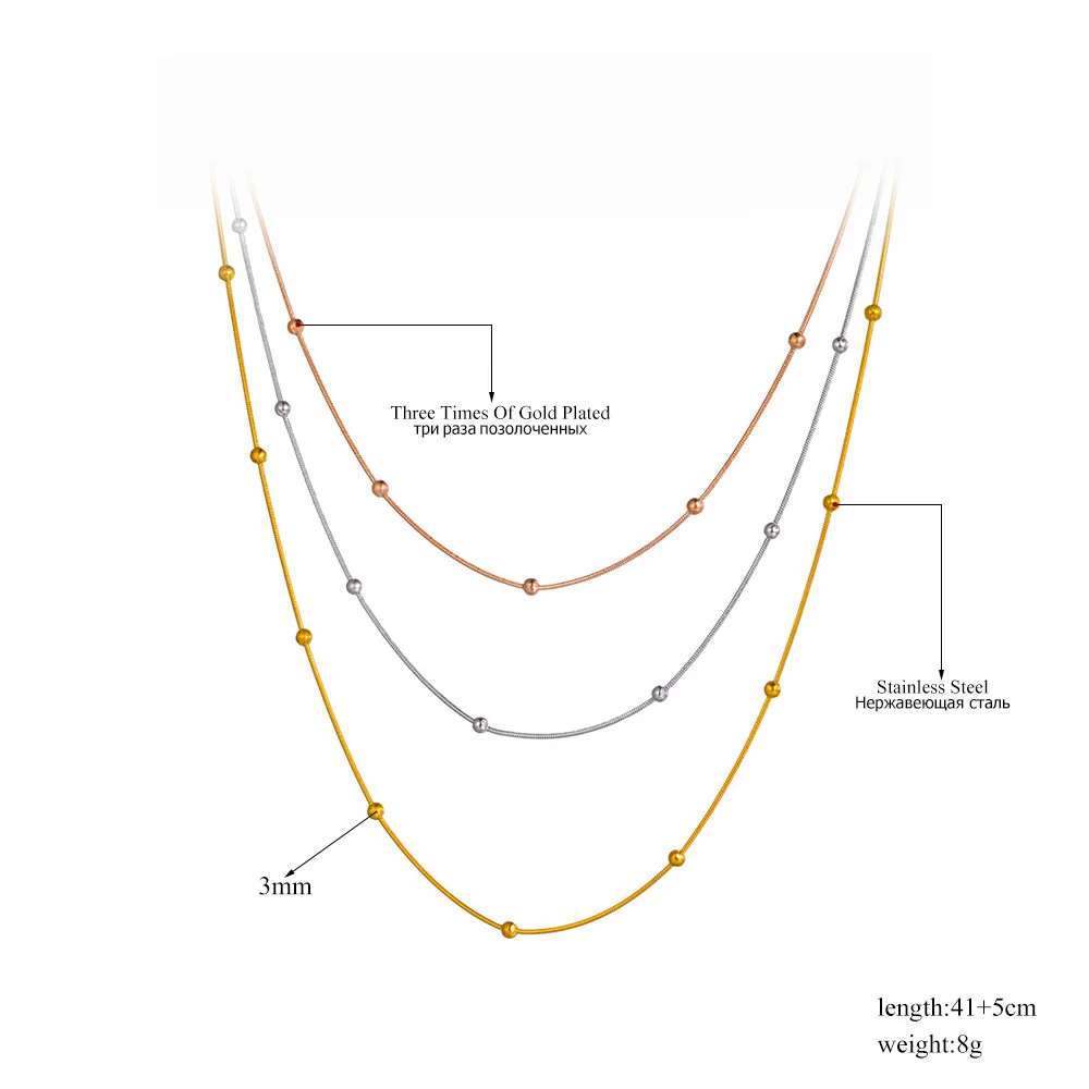 Ожерелье Lokaer из титановой нержавеющей стали трех золотых цветов, модное богемное трехслойное ожерелье с цепочкой из бисера для женщин N20295