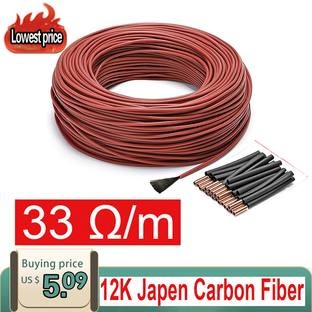 Обогревательный кабель из силикона и углеродного волокна, 100 м, 12k, 33 Ом, 5-220 В, инфракрасный обогревательный провод