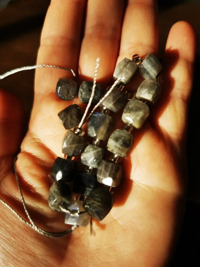 бусины симпатичные, можно даже сказать нежные. только ни для браслета, ни тем более для бус, бусин не хватит. камни отбликивают синим, голубым, зеленоватым, фиолетовым, очень классно! для изготовления бус нужно будет с каким-то ещё камнем сочетать. эта покупка дала мне знать, что нужно очень внимательно учитывать размеры.