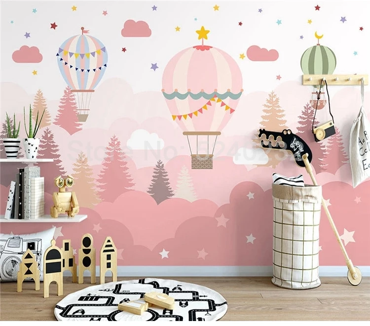 3d-плакат по индивидуальному заказу, фотообои для детской комнаты, расписанные вручную розовыми мультяшными облаками, воздушными шарами, детской комнаты, девушки, спальни