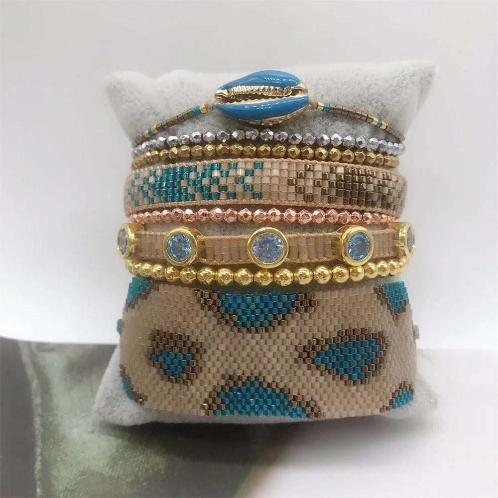 Женский комплект браслетов ZHONGVI с леопардовым принтом, браслет из ракушек и стразы, Подарочная бижутерия