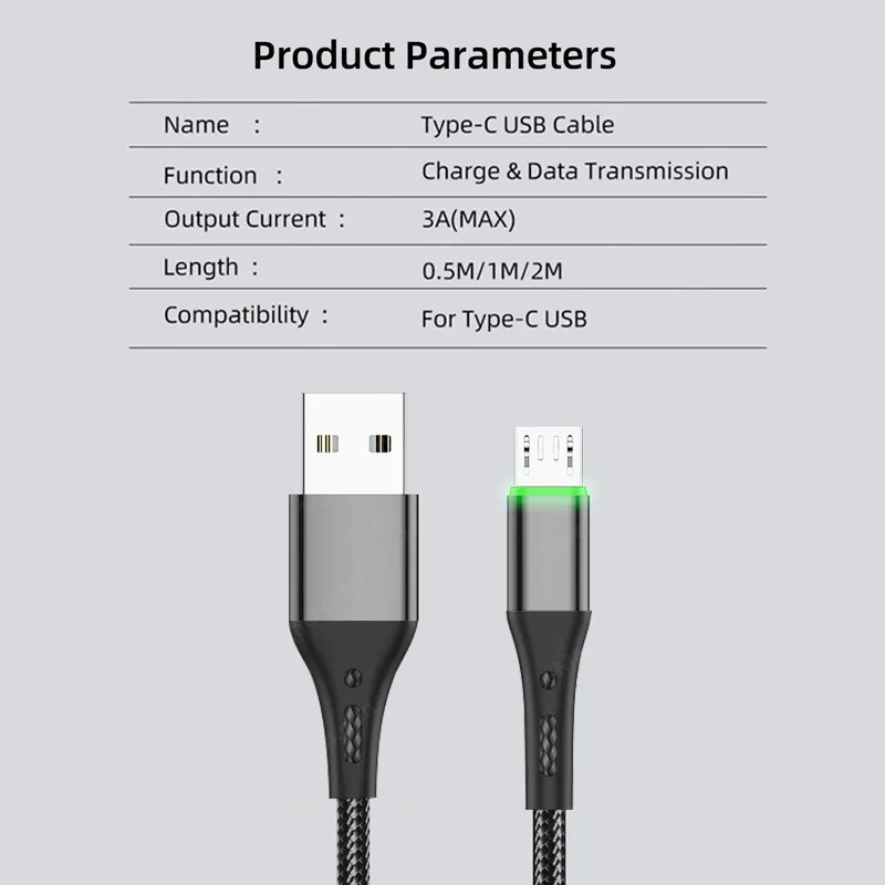 Кабель Micro USB 3A 0,5 м1 м2 м, светодиодный провод для синхронизации данных и быстрой зарядки для Samsung S7 Huawei Xiaomi, кабели для планшетов Android мобильный телефон
