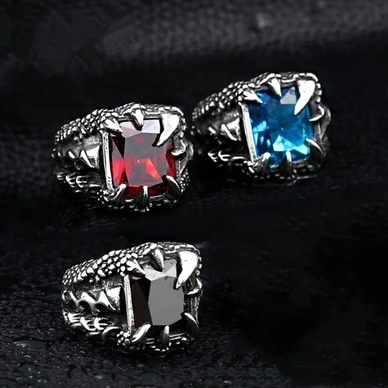 Массивное кольцо в форме когтя дракона, инкрустированное в богемном стиле, мужское кольцо с металлическим кристаллом, инкрустированное кольцо, аксессуары вечерние, ювелирные изделия