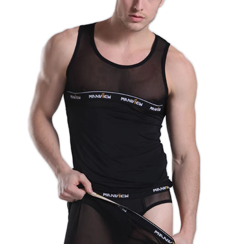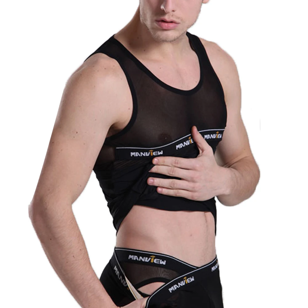 Прозрачные сексуальные майки, прозрачный сетчатый дышащий жилет без рукавов, мужская спортивная одежда для тренировок и фитнеса, модное черное боди
