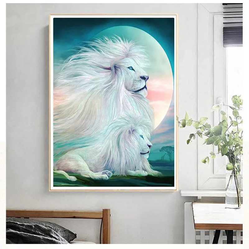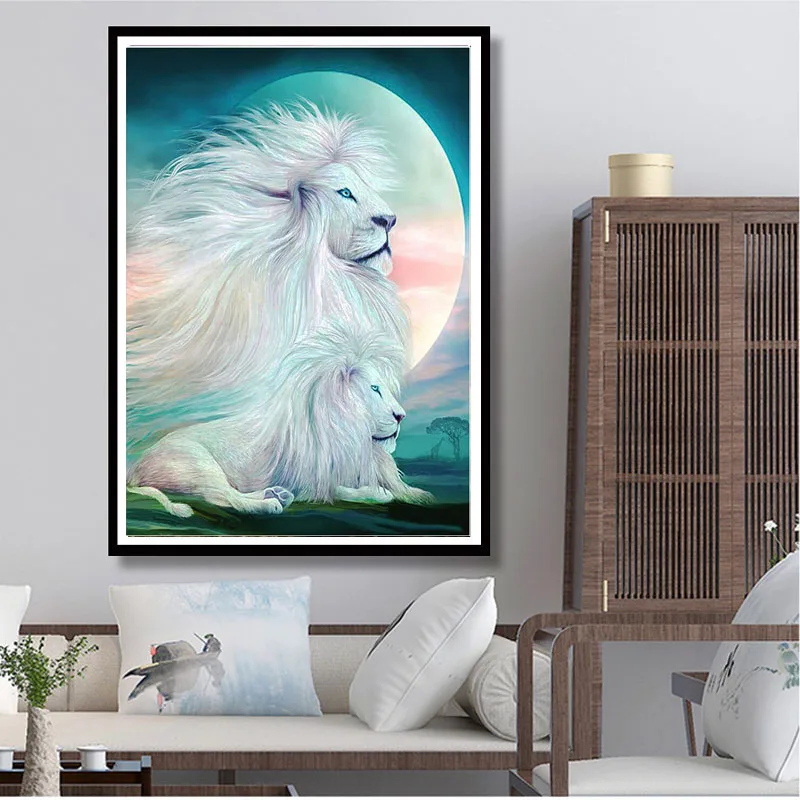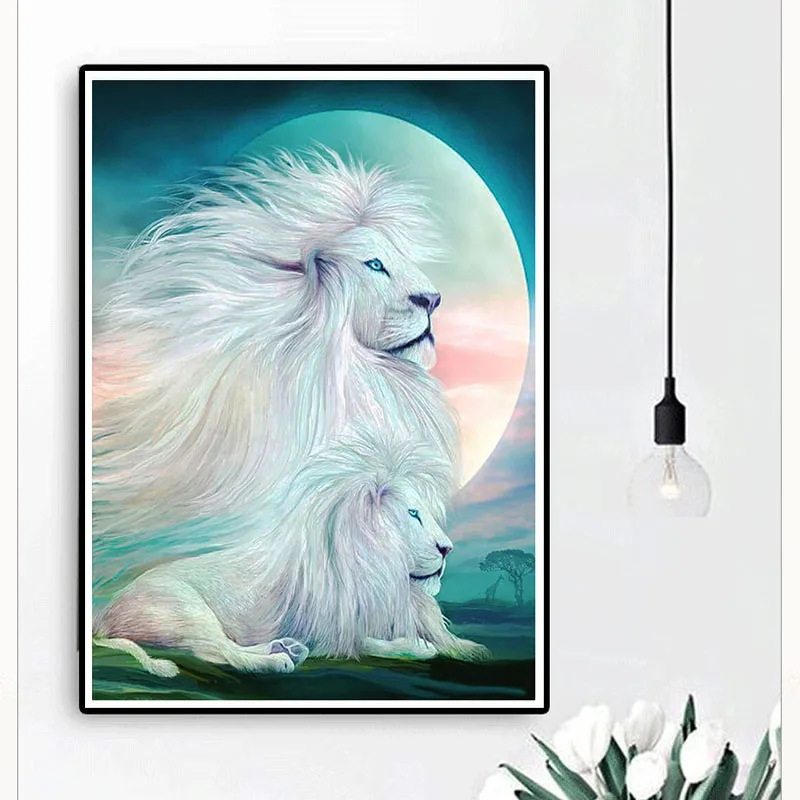 Алмазная картина LaoJieYuan, квадратная картина с изображением белого льва, 5D, пейзаж, вышивка крестиком, набор для украшения дома, рукоделие, Алмазная мозаика