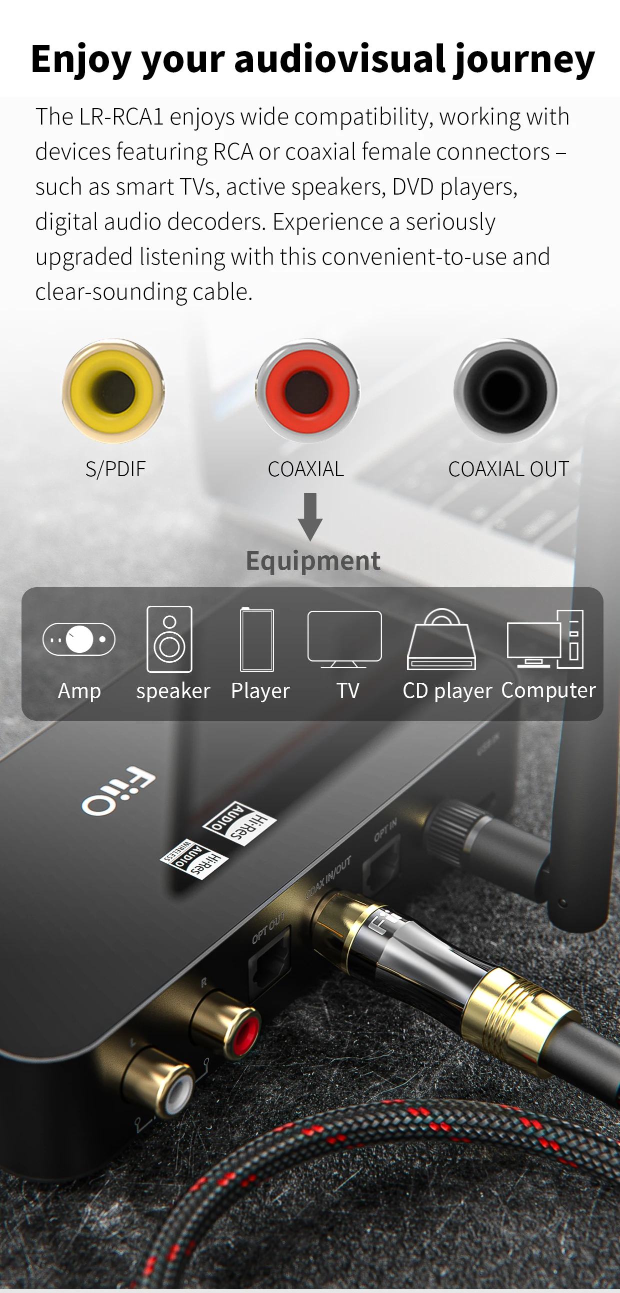 * Наслаждайтесь удивительным аудиовизуальным путешествием с новым RCA-разъемом FiiO, цифровым коаксиальным кабелем