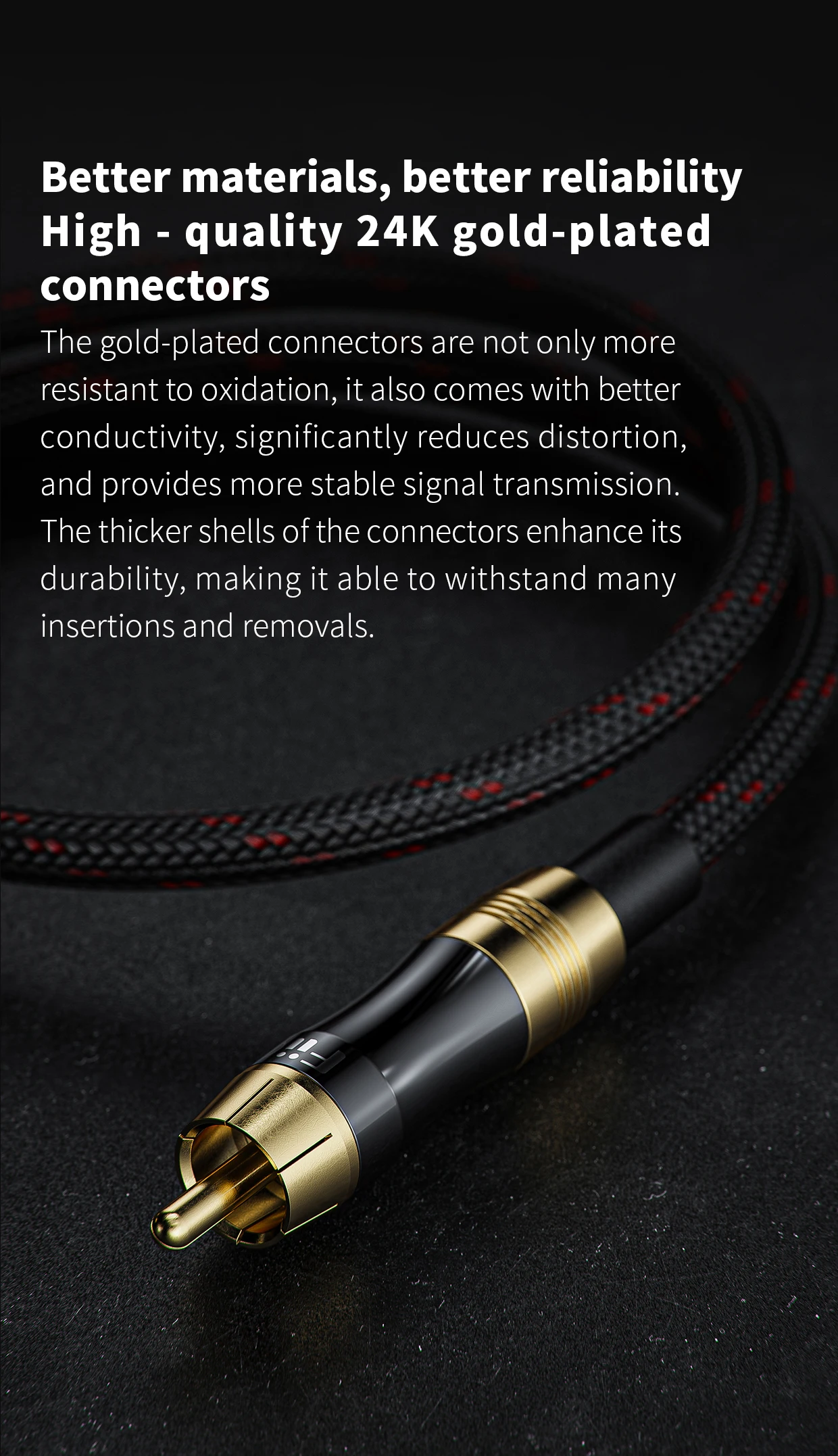 Внешняя оболочка из толстого ПВХ более устойчива к изгибам и в целом продлит срок службы кабеля значительно дольше. Внешняя оболочка кабеля 50 см изготовлена из гибкого, но при этом прочного нейлона, который способен вручную выдерживать ежедневный износ. Кроме того, высококачественные Позолоченные 24K разъемы не только более устойчивы к окислению, они также обладают лучшей проводимостью, значительно уменьшают искажения и обеспечивают более стабильную передачу сигнала. Более толстые оболочки разъемов усиливают его долговечность, благодаря чему они способны выдерживать множество вставок и извлечений.