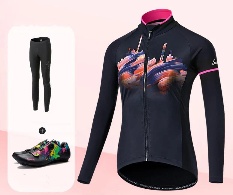 Женский трикотажный комплект Santic Cycle, зимняя одежда для велоспорта, модная Женская дорожная велосипедная форма с длинным рукавом, утепленная профессиональная Термоодежда, 2022