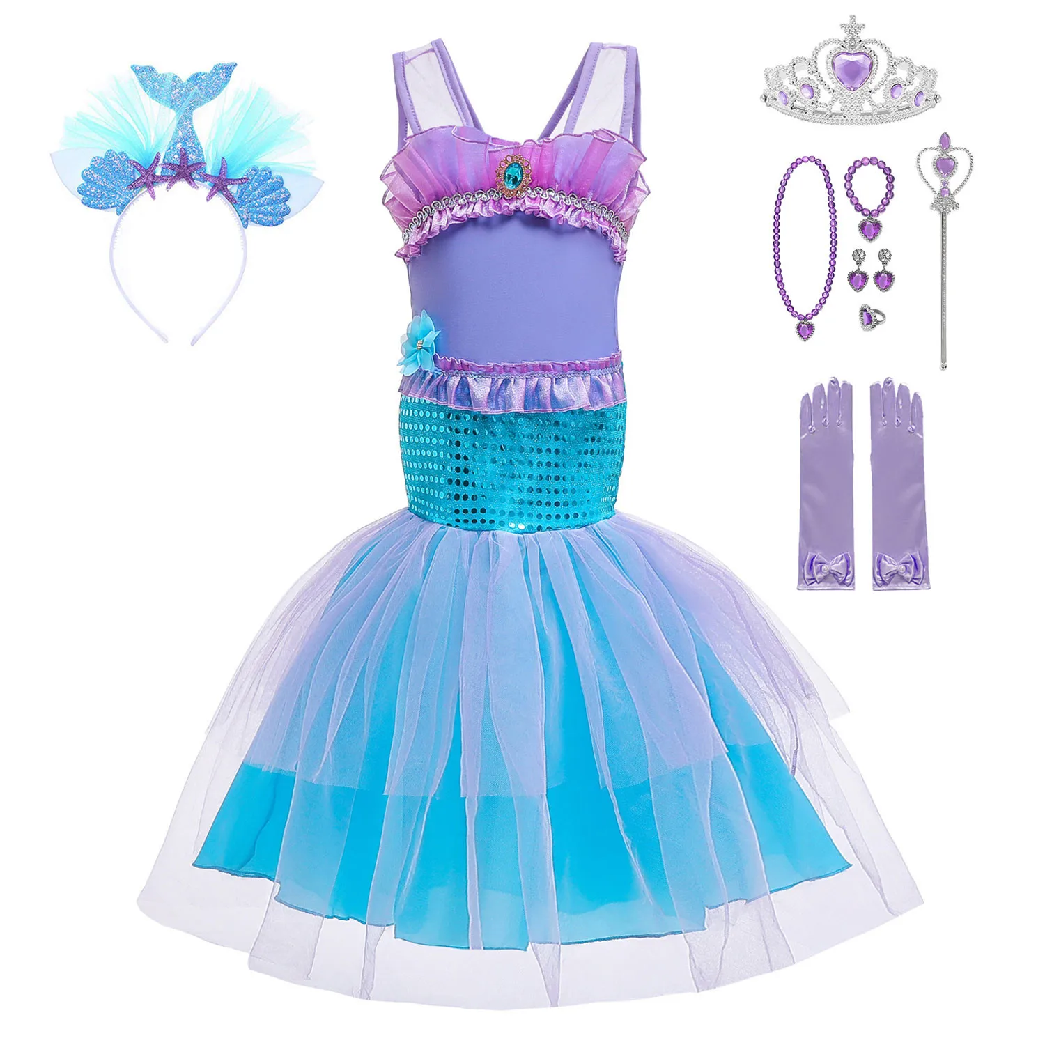 Летний костюм для девочки с маленькой русалочкой, наряды принцессы ...