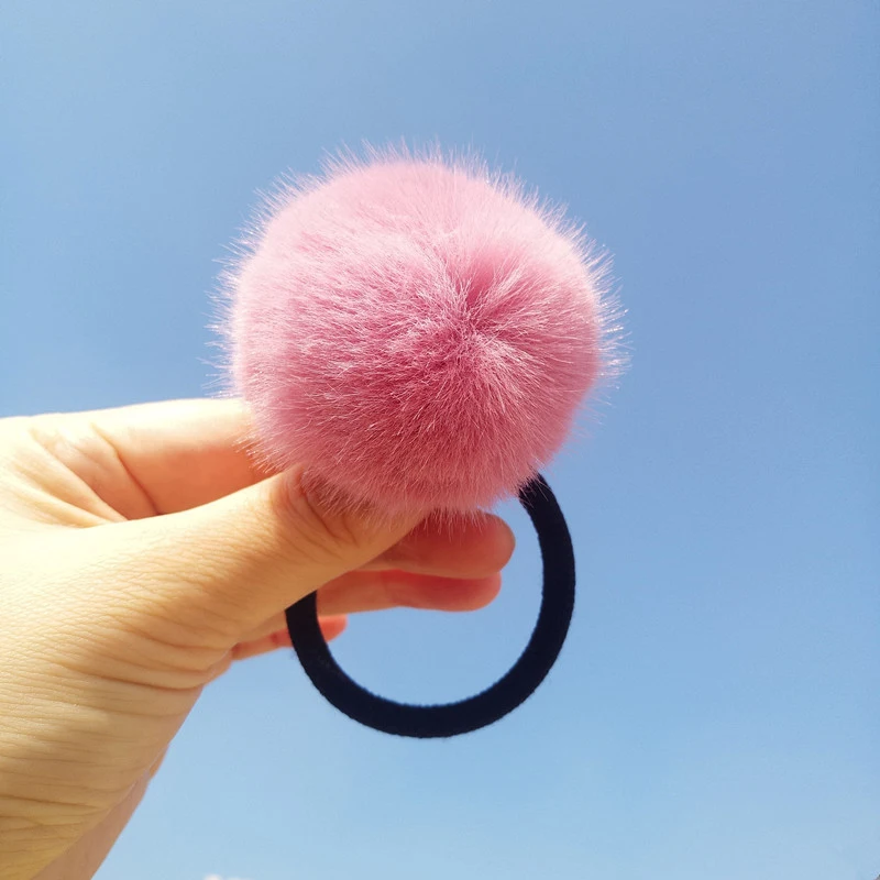 Резинка для волос с имитацией кроличьего меха и помпоном, мягкие те...