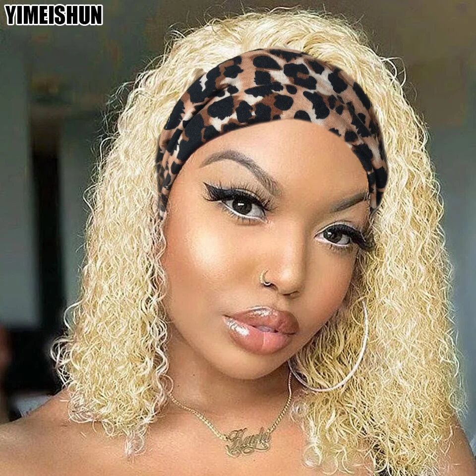 613 кудрявые вьющиеся головные уборы, блонд, парик, парики из человеческих волос для черных женщин, без клея, полностью машинная работа, бразильский парик без повреждений YIMEISHUN