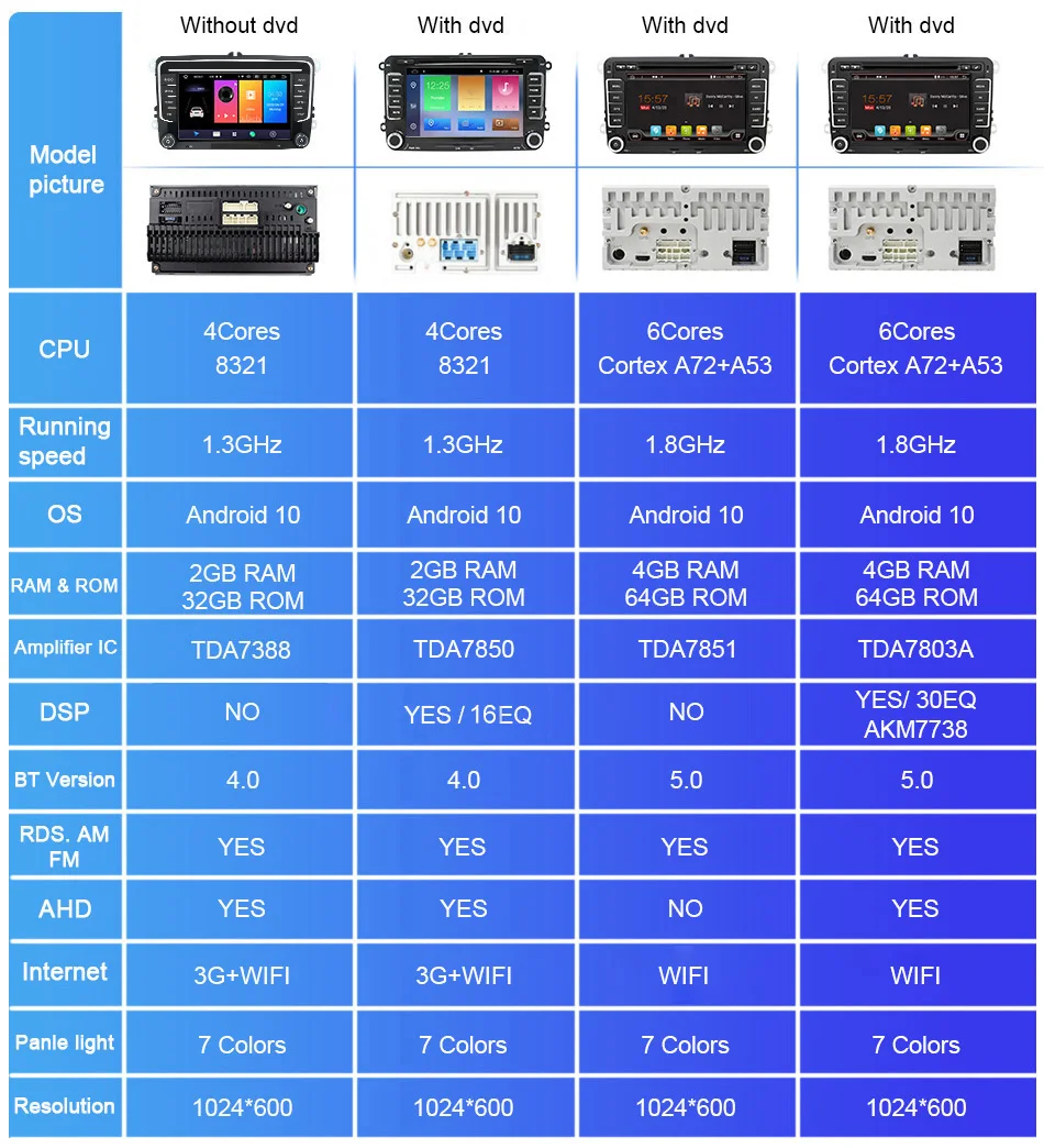 Подходит для VW/Skoda/Seat автомобилей с 2005 по настоящее время с RCD310,RCD315,RCD510, rns510.если ваш автомобиль 2016 + Rapid,2015 + Tiguan и другие новые модели после 2016, вам могут потребоваться новые MQB VW Quadlock и CANBUS. Пожалуйста, сообщите нам, мы поможем вам проверить его и отправить вам правильный кабель Quadlock и CANBUS.