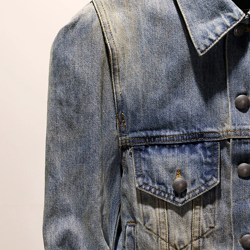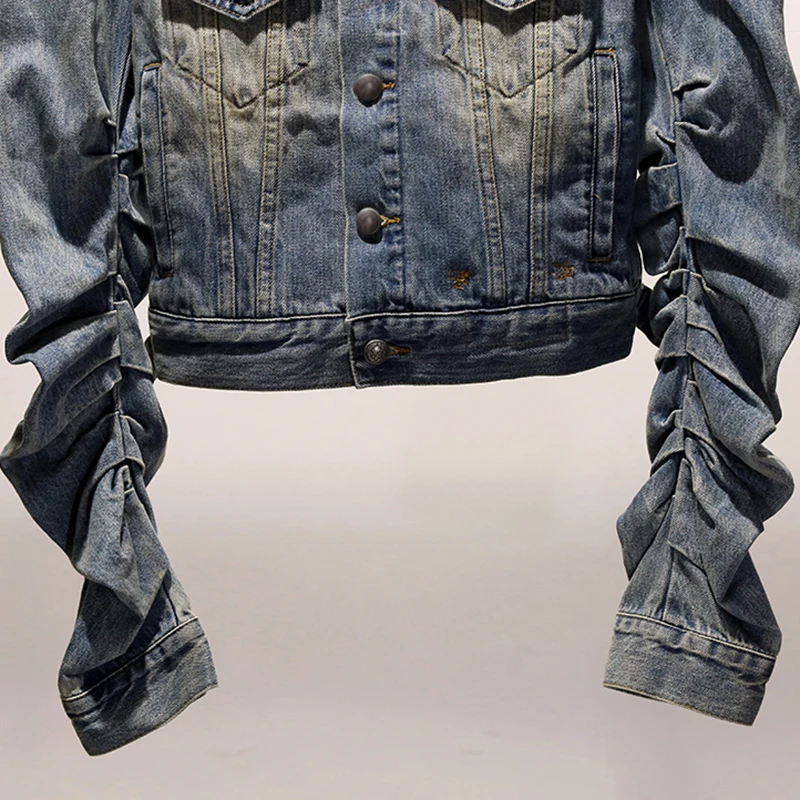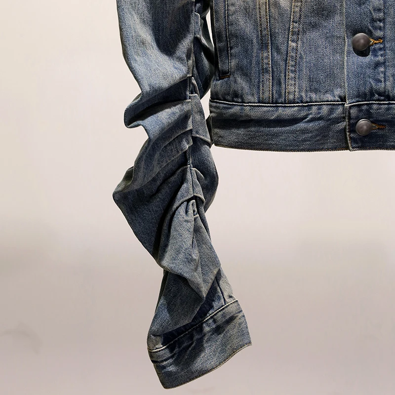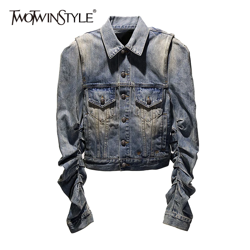 Женская джинсовая куртка с рюшами TWOTWINSTYLE, повседневная короткая куртка с отложным воротником и длинными рукавами, осенняя одежда 2020