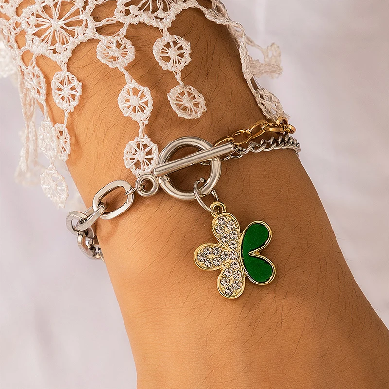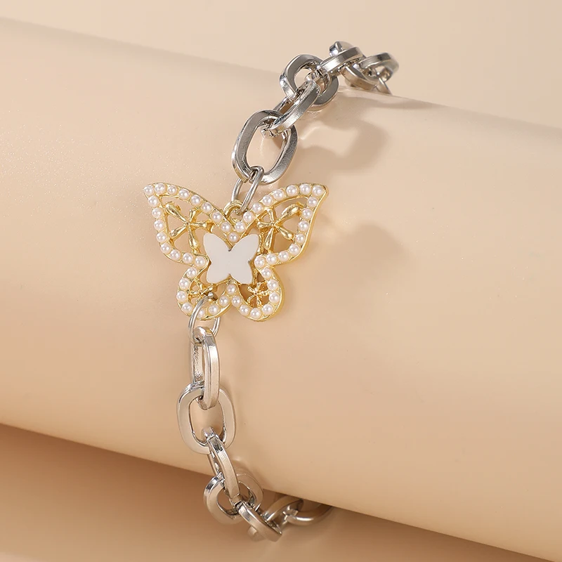 Docona 10 видов стилей браслет с жемчугом и бабочкой для женщин Готический монета с портретом красочный капельный масляный металлический браслет ювелирные изделия