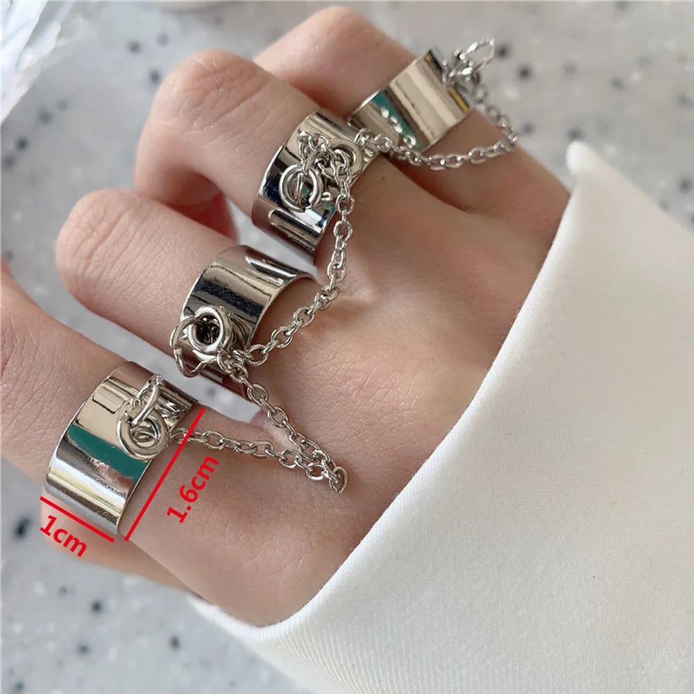 Кольцо в стиле панк, Крутое кольцо, регулируемая цепочка из четырех...