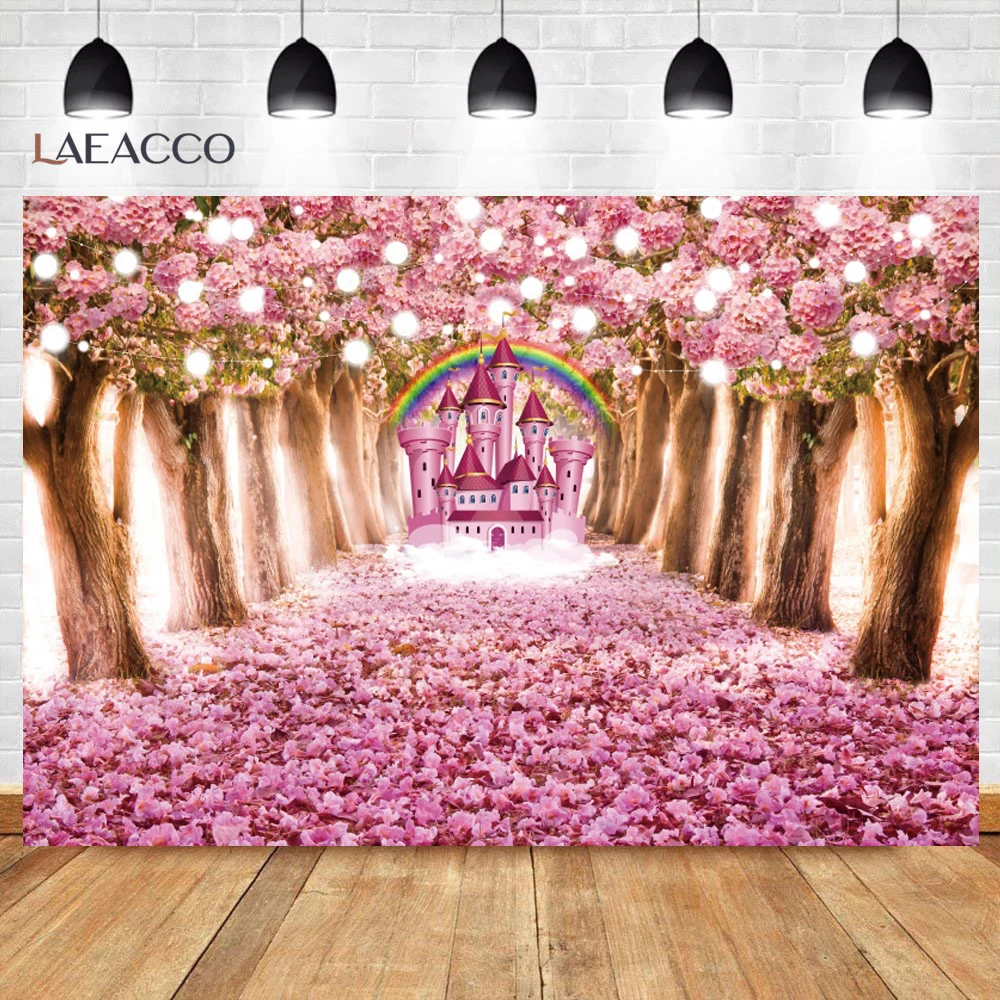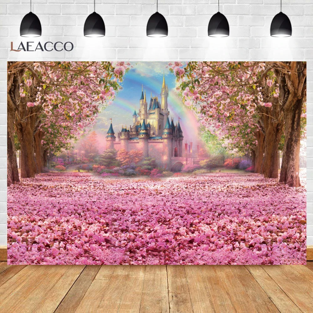 Весенняя розовая роза цветок замок радужные деревья Страна Чудес мечтательный день рождения тематический Декор фото фон фотография фон