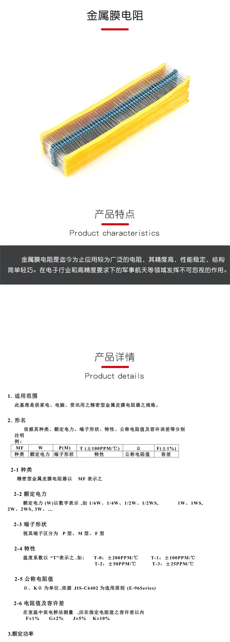 Металлический пленочный резистор 0,5 Вт 1 Вт 2 1% Пакет резисторов ...