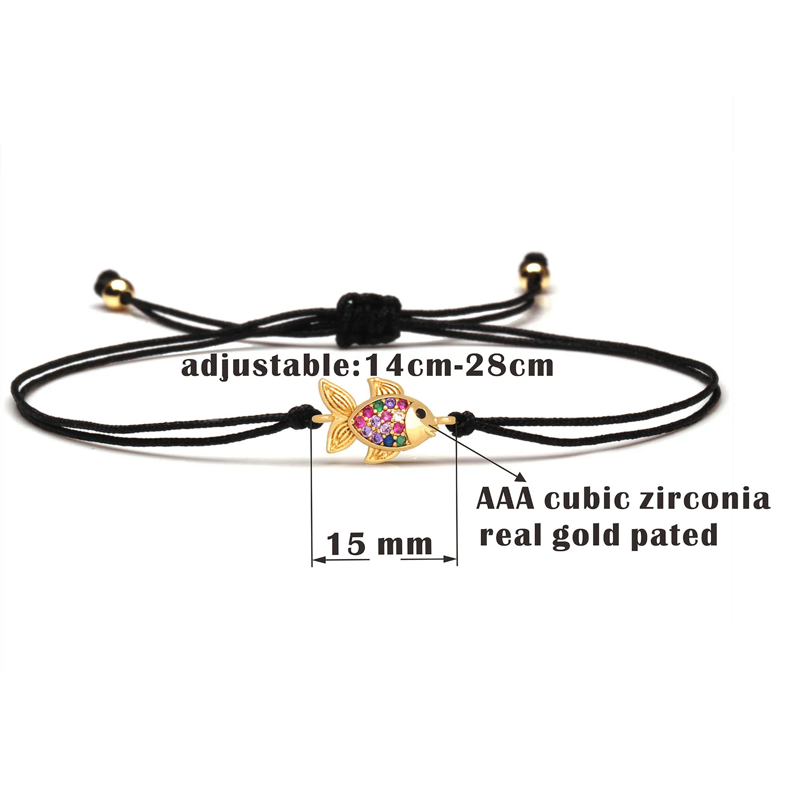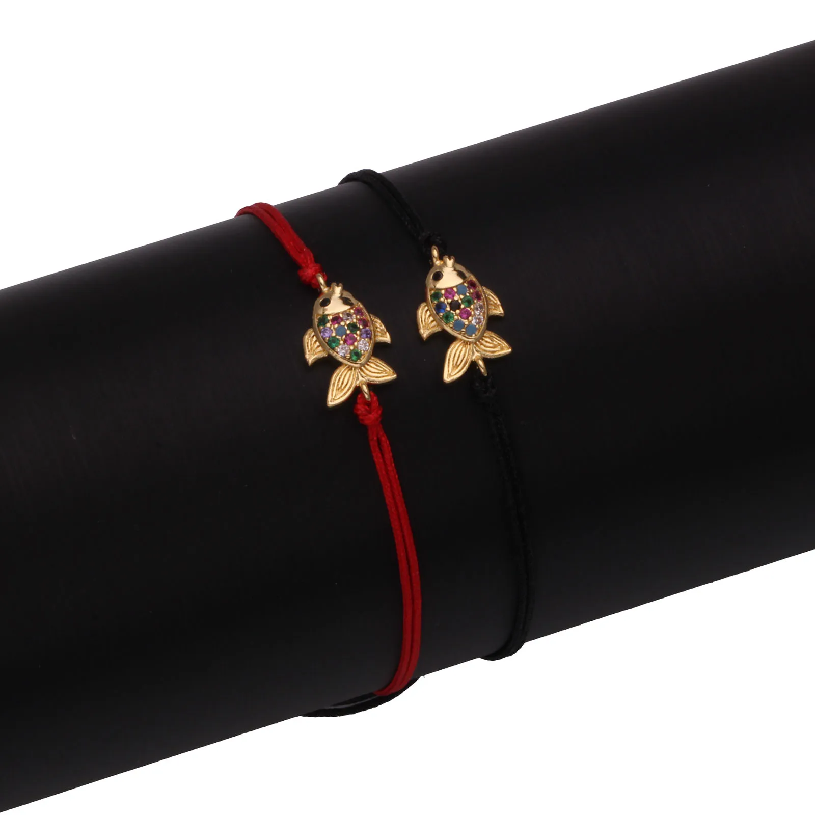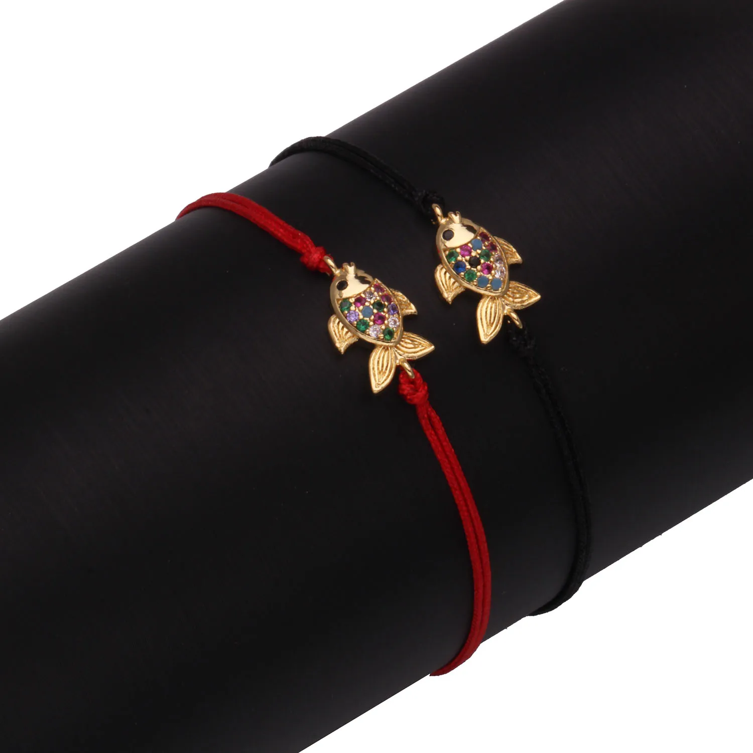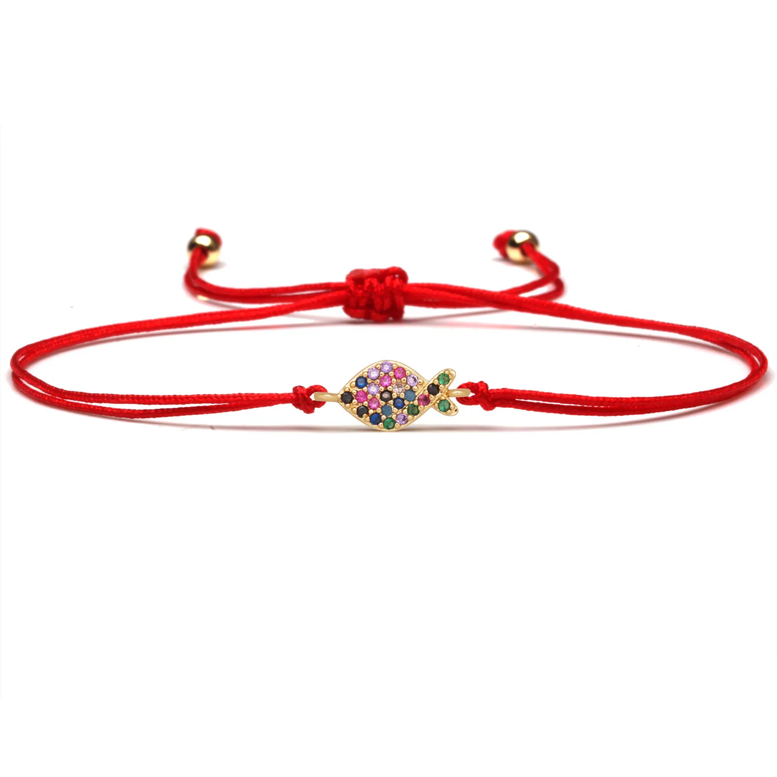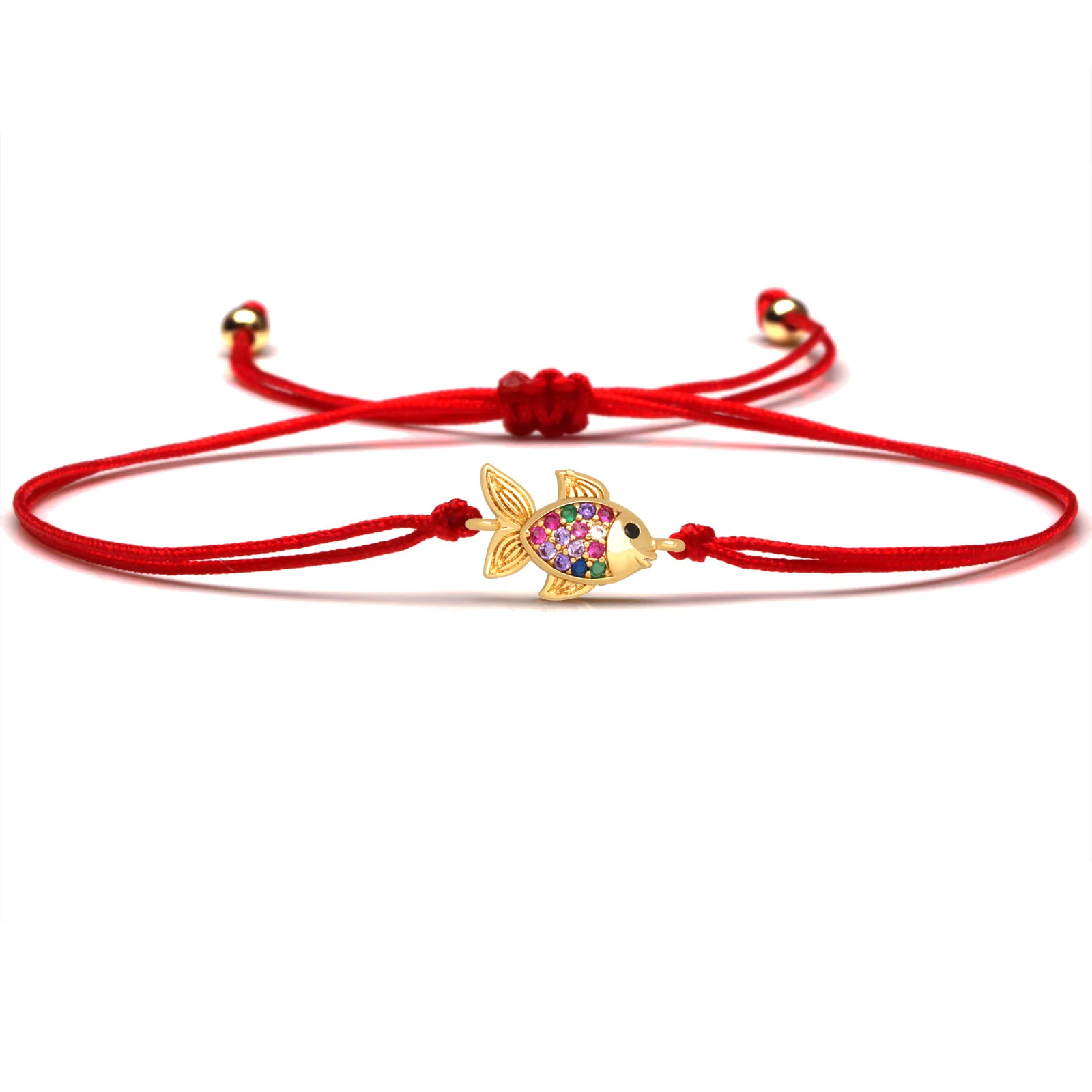 Многоцветный кубический цирконий медная Золотая рыбка счастливый Шарм браслет для женщин Личная Милая Рыбка красная веревка удача защита ювелирные изделия подарок