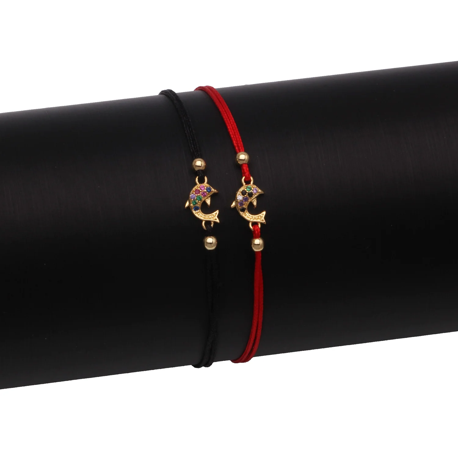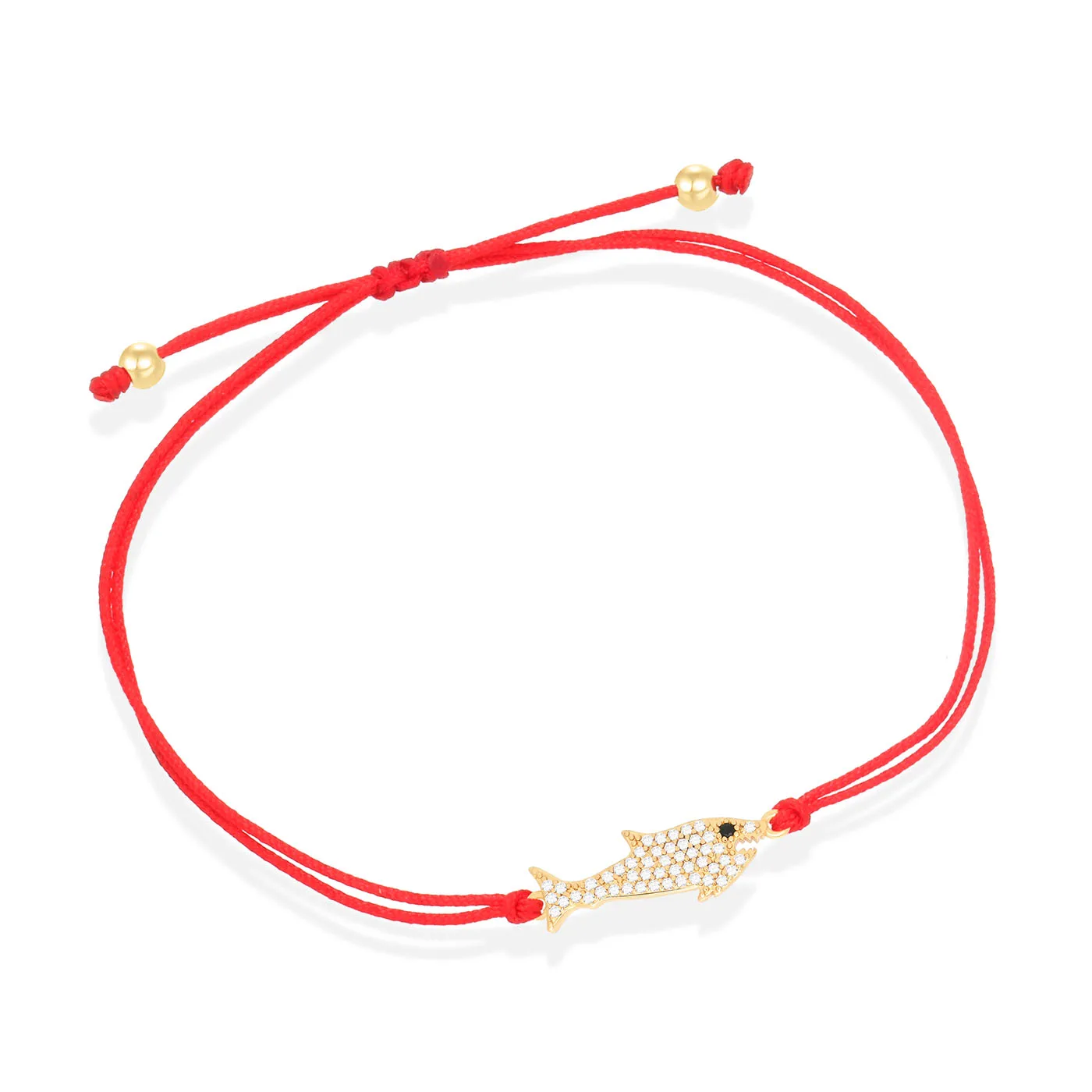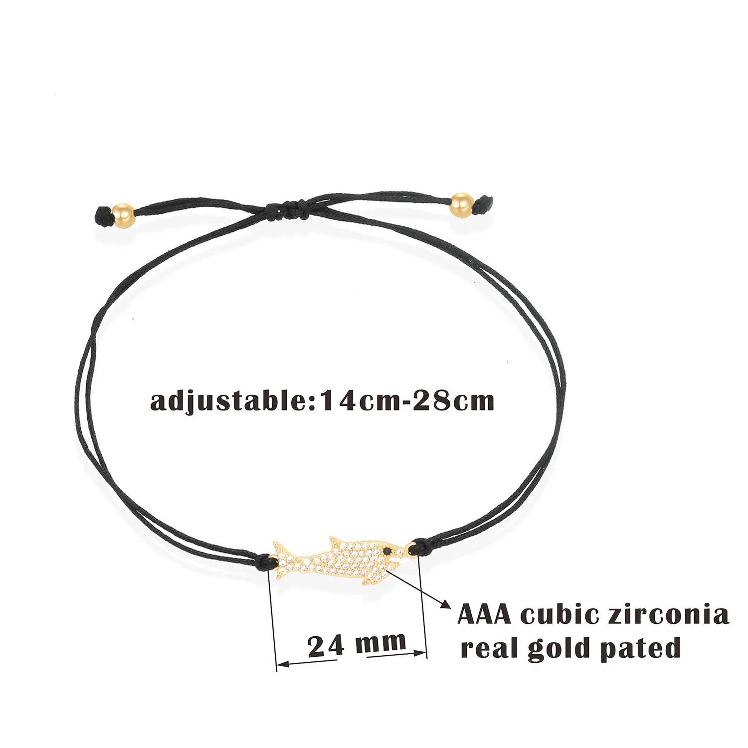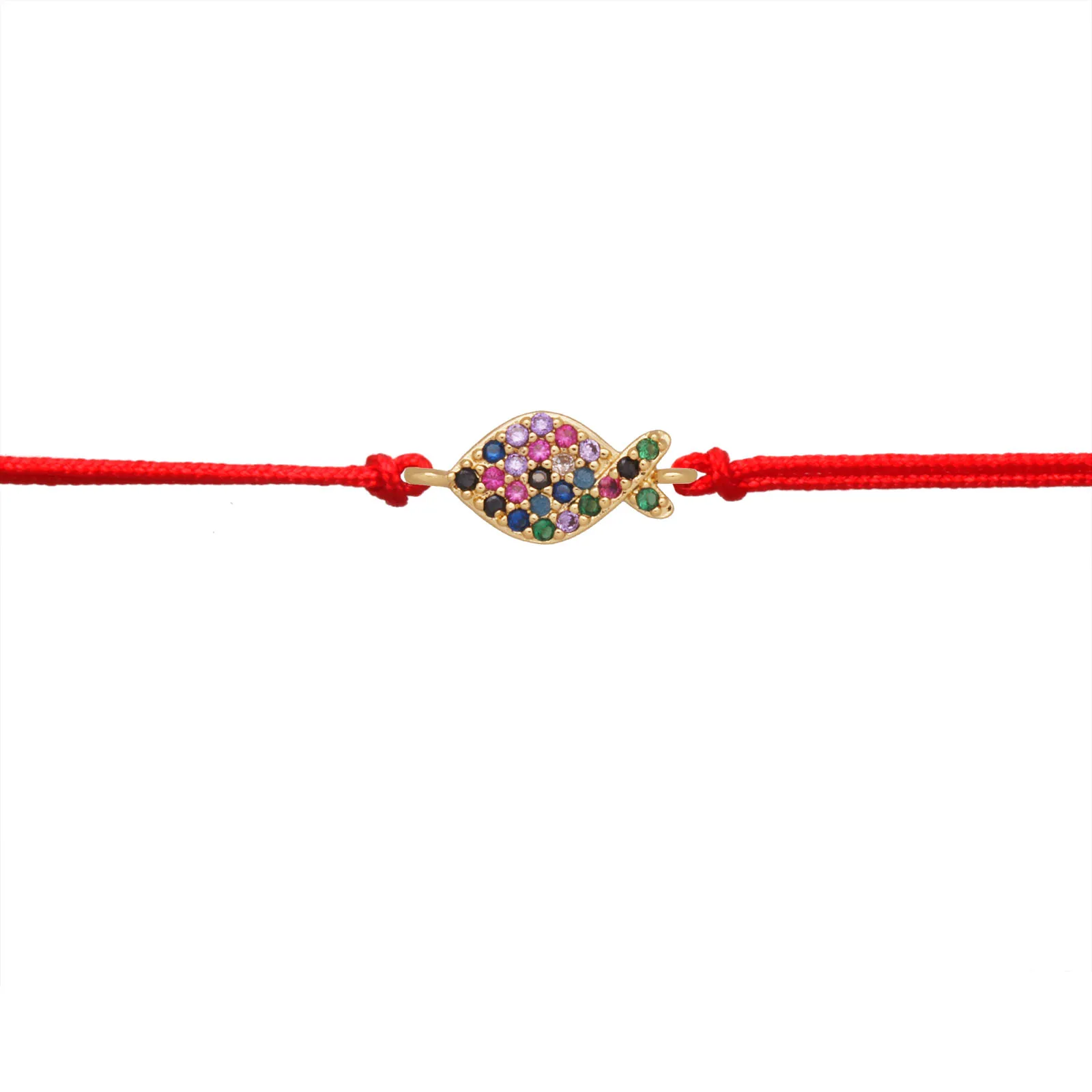 Многоцветный кубический цирконий медная Золотая рыбка счастливый Шарм браслет для женщин Личная Милая Рыбка красная веревка удача защита ювелирные изделия подарок
