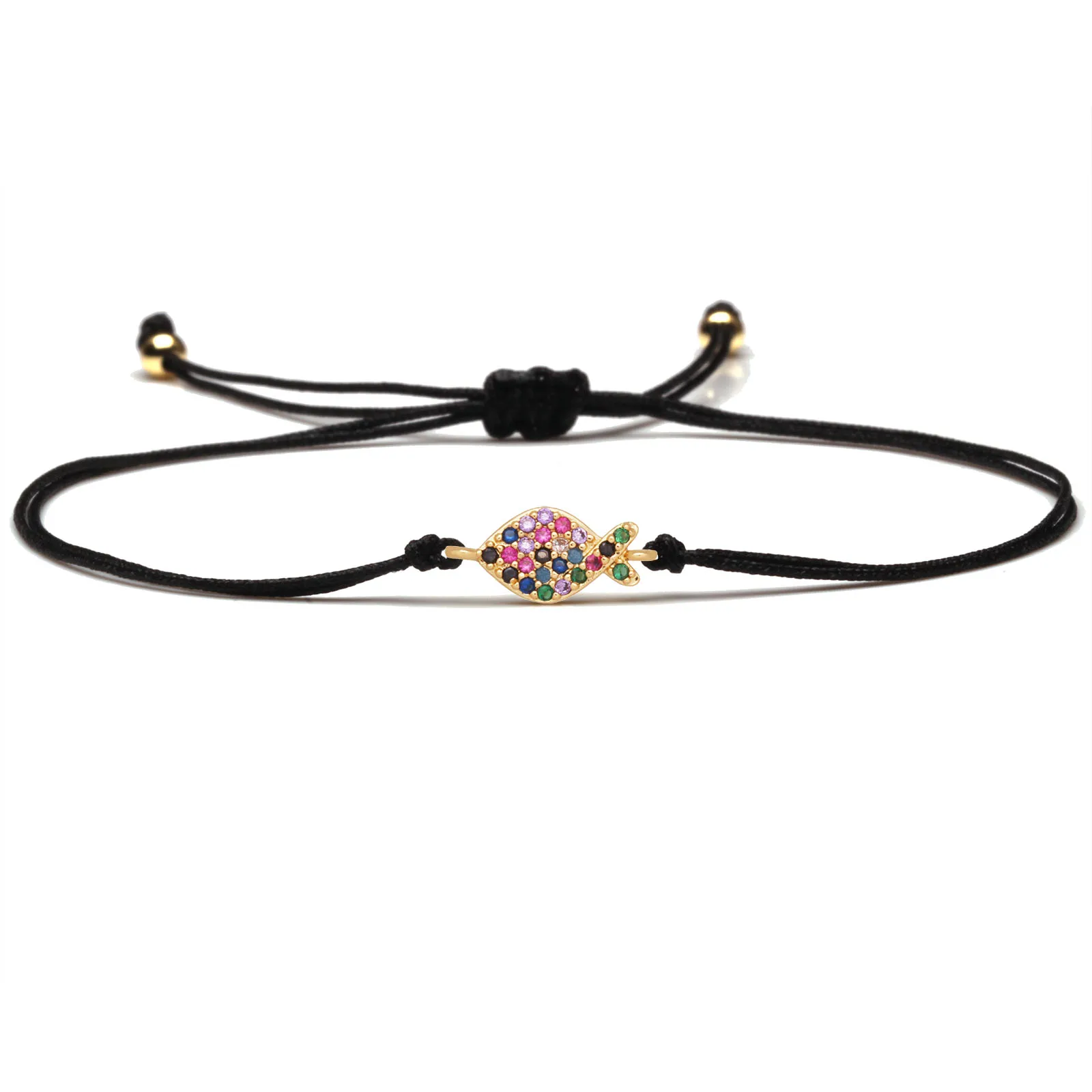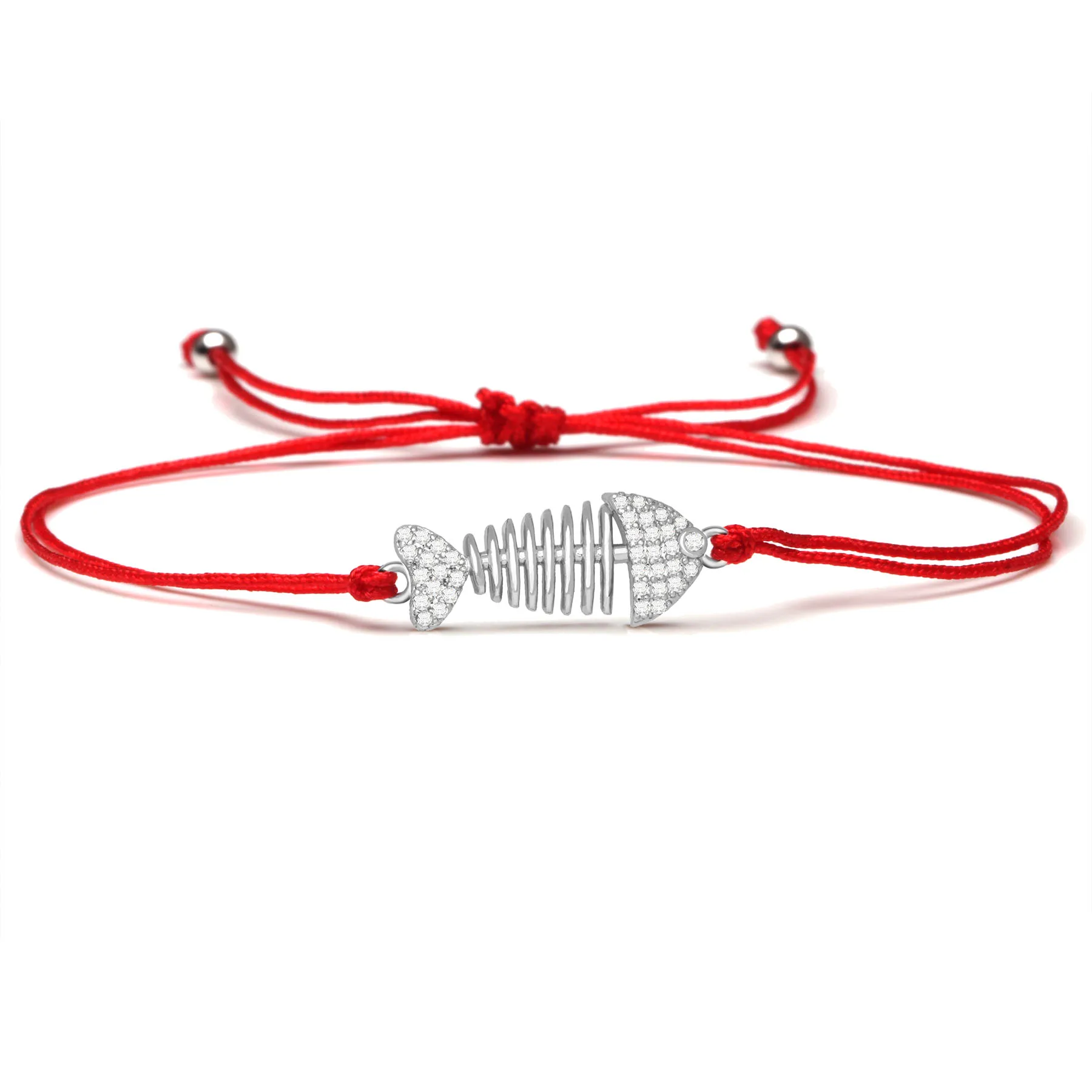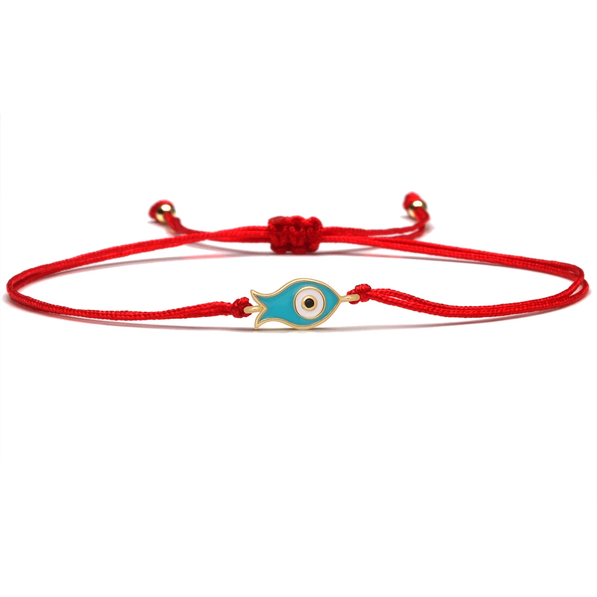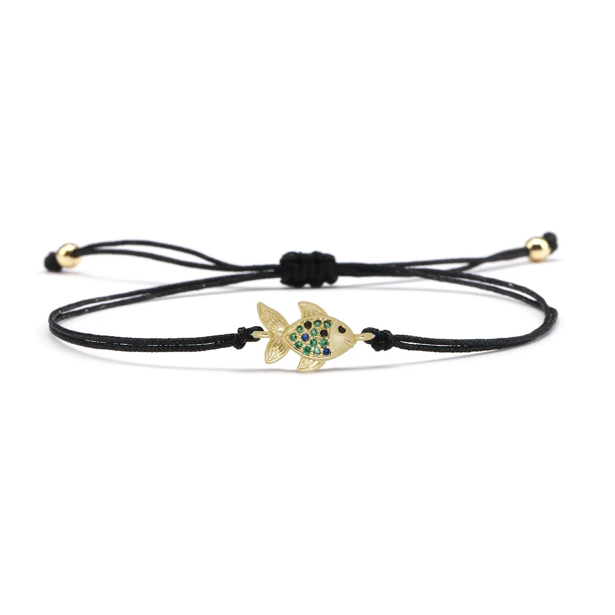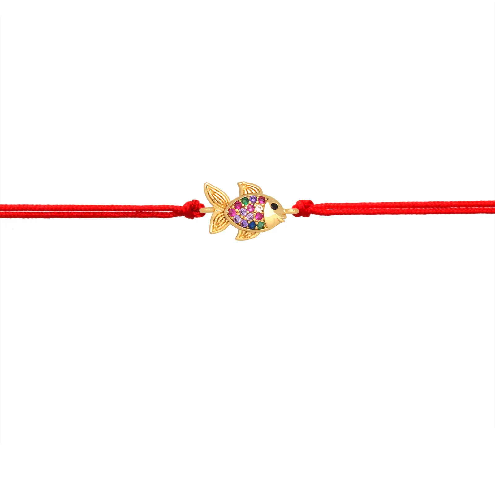 Многоцветный кубический цирконий медная Золотая рыбка счастливый Шарм браслет для женщин Личная Милая Рыбка красная веревка удача защита ювелирные изделия подарок