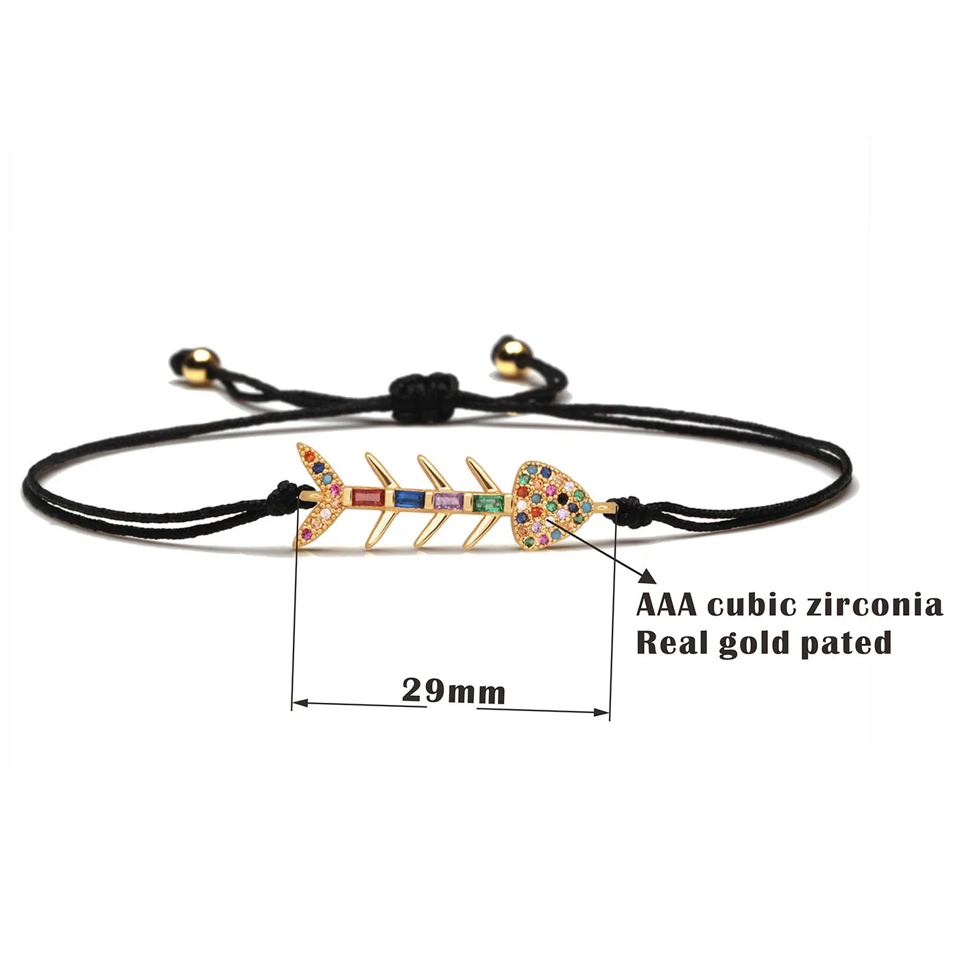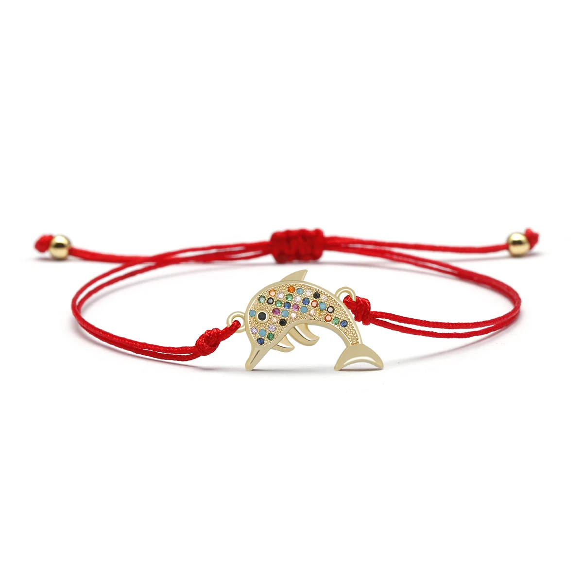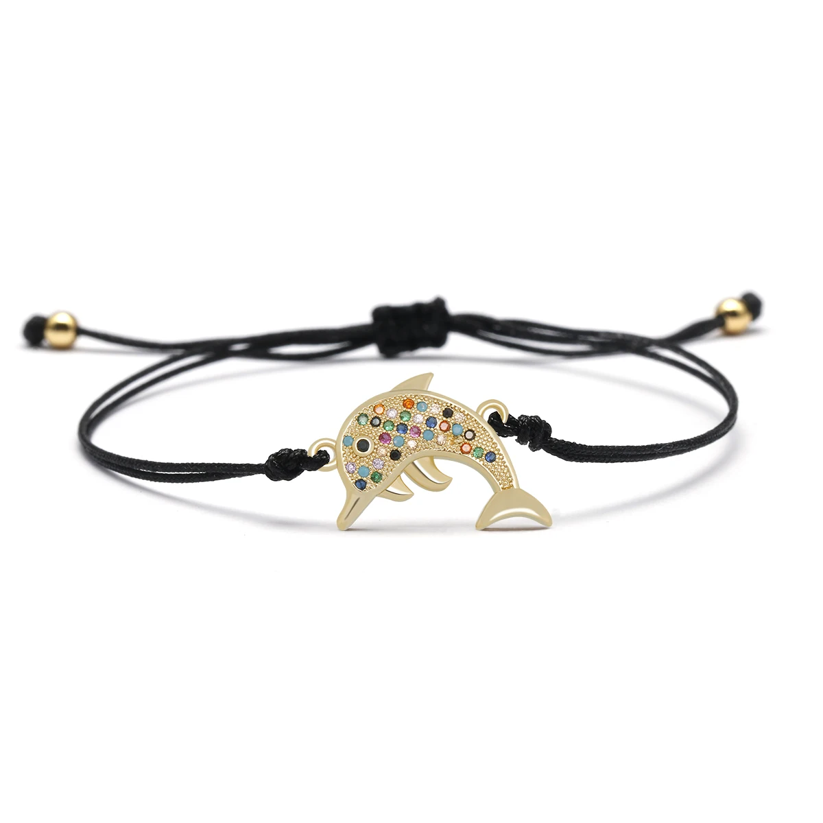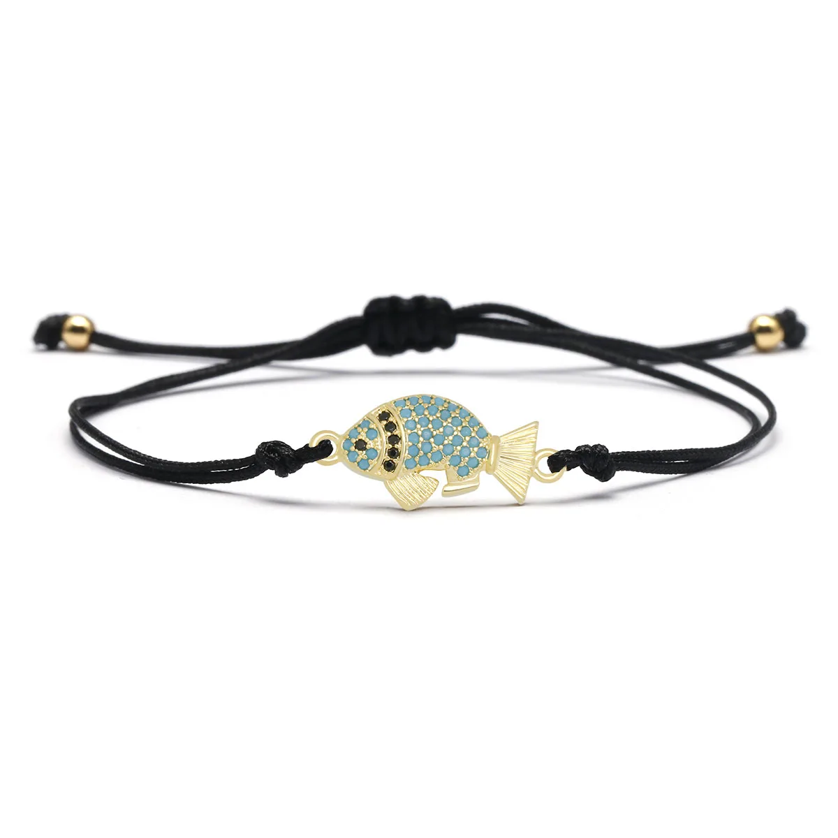 Женский браслет с разноцветным кубическим цирконием, медный браслет с подвеской в виде золотой рыбки, Дельфина океана, рыбьей кости, акулы и рыбок с кубическим цирконием, ювелирные изделия ручной работы
