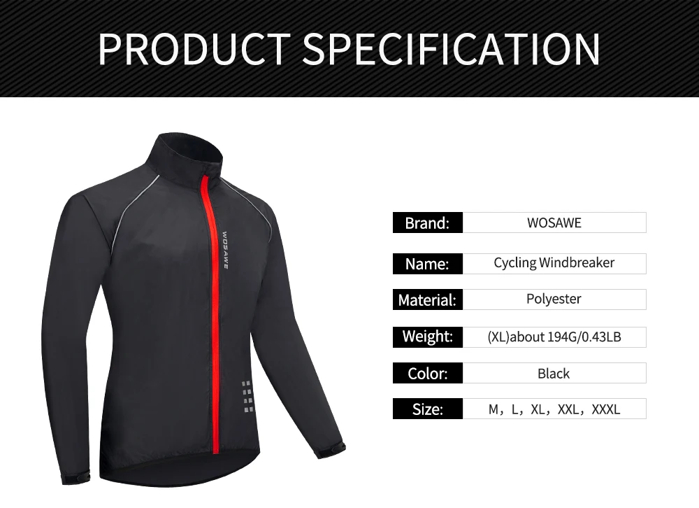 WOSAWE Сверхлегкий Светоотражающие Для Мужчин's велосипедная куртка...