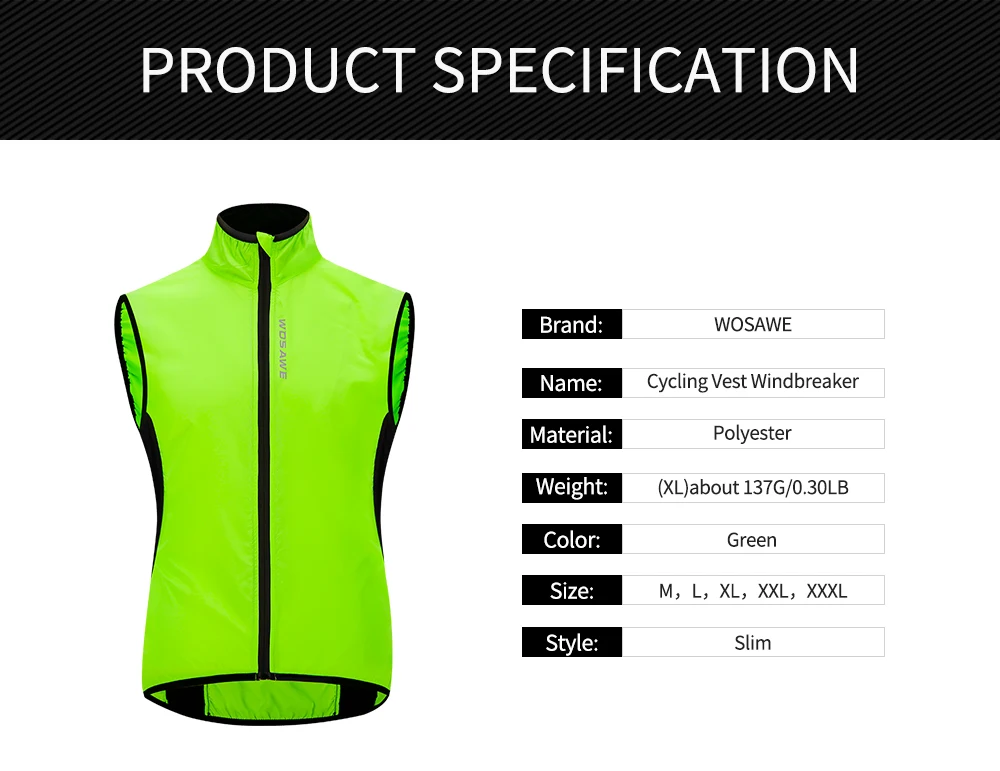 Светоотражающий Жилет WOSAWE, для велоспорта, ветрозащитный, непром...