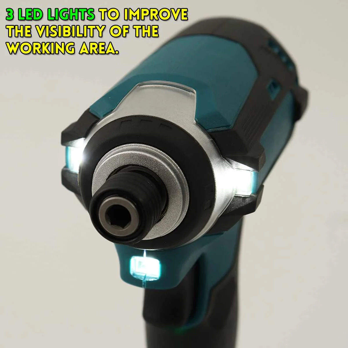 ХарактеристикиАккумулятор для Makita 18V BL1850(196677-8) BL1840(196403-5)Цвет: синий + черныйМакс. Крутящий момент: 150 Н · мТрехскоростная Регулировка: 0-3600/3200/2100 об/минЧастота удара: 0-3800/3600/2600 ударов в минутуРазмер: x 79x мм/x 3x дюймаРазмер держателя инструмента: 6,35 мм-1/4 дюймаСветильник: 3