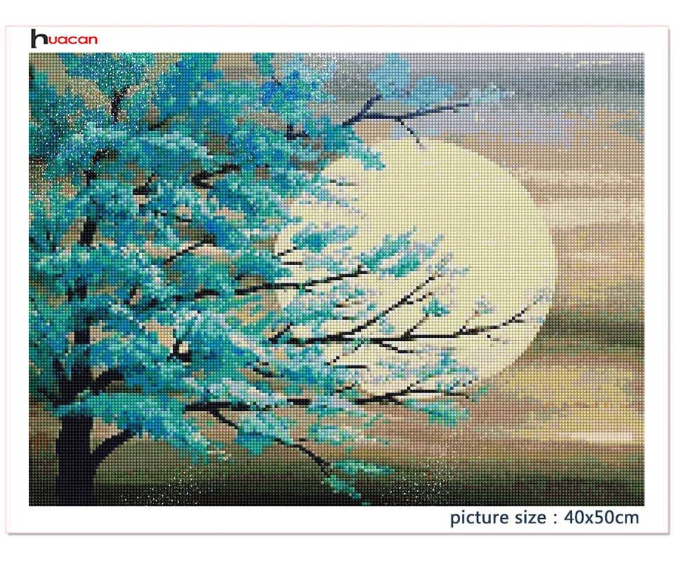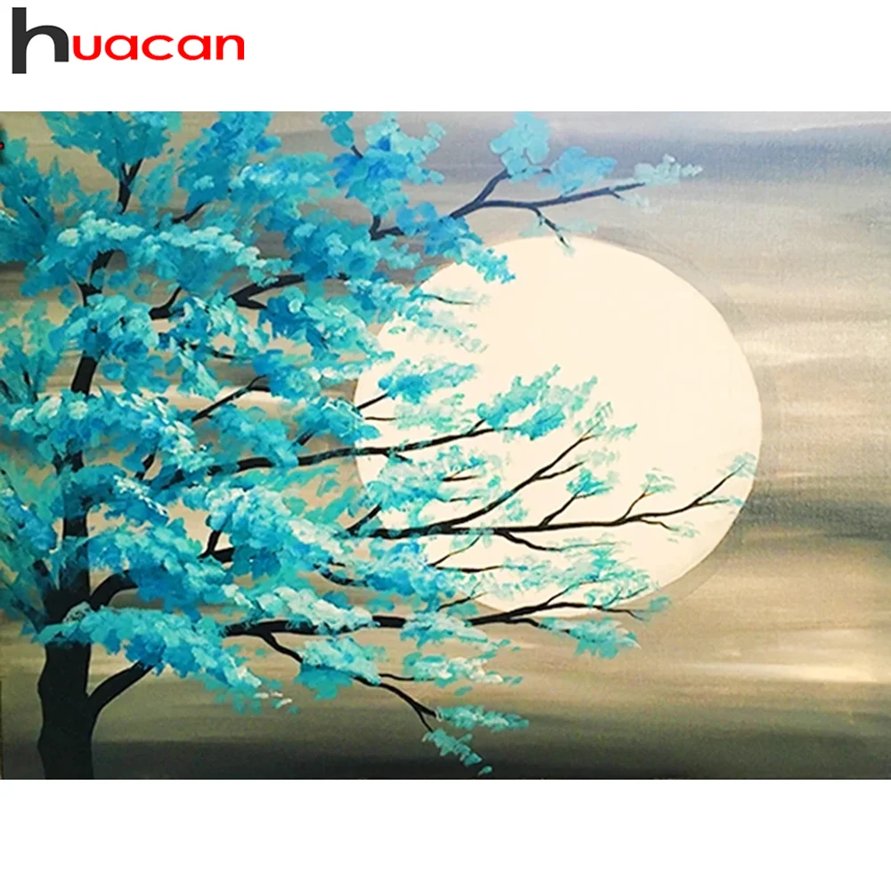 Алмазная живопись 5d сделай сам Huacan, лунный пейзаж, вышивка, мозаика, пейзаж с деревом, домашний декор, алмазная живопись