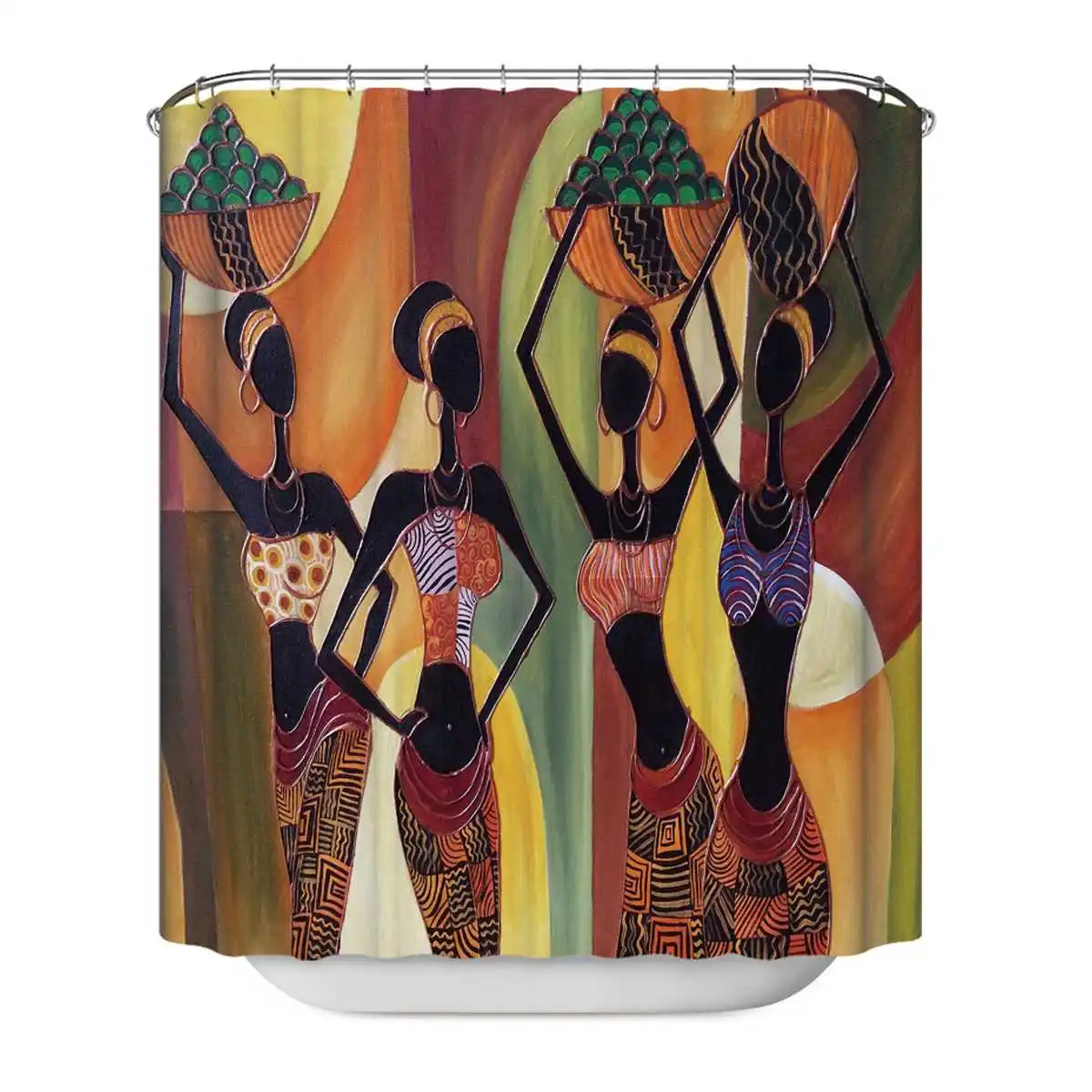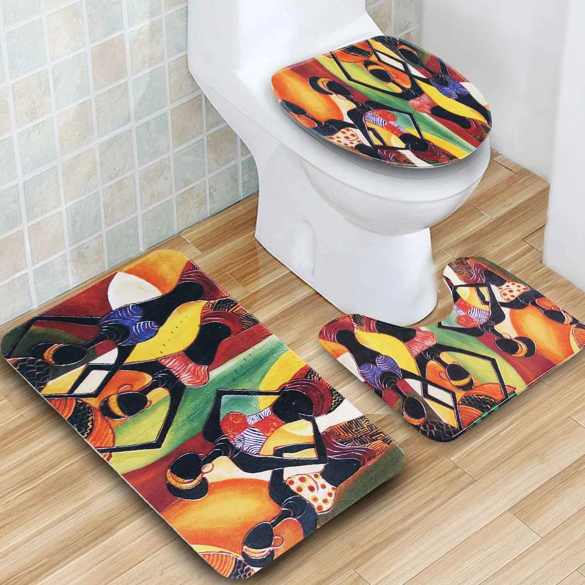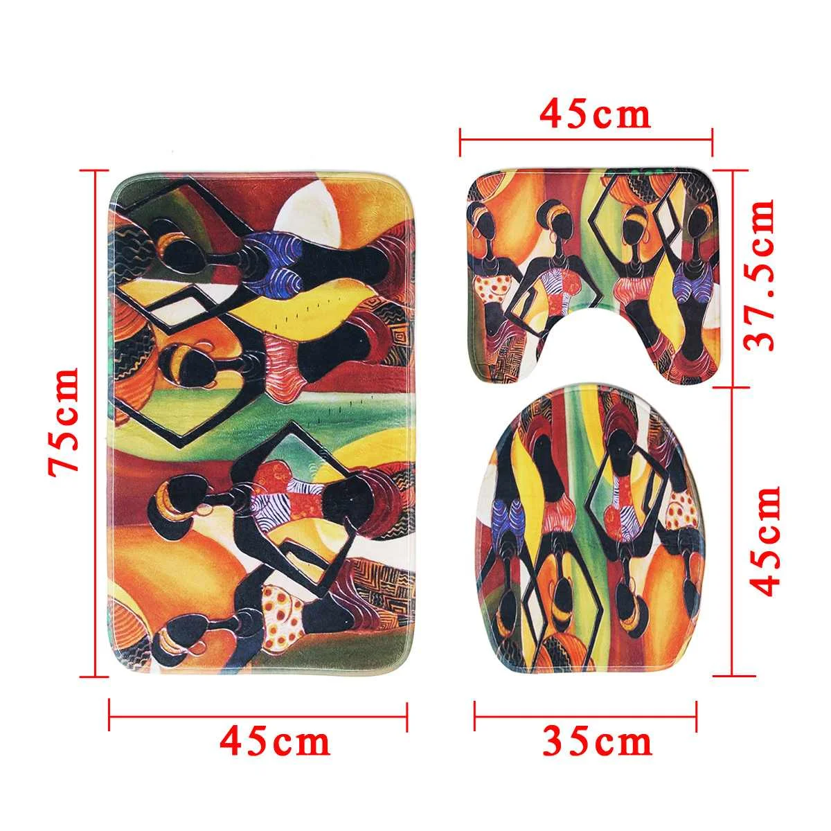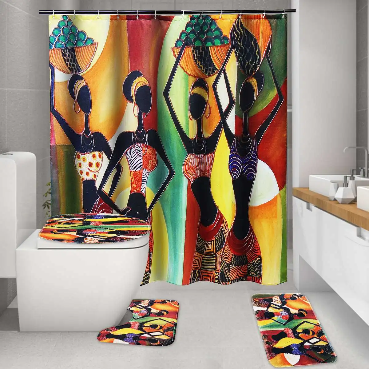 Набор Противоскользящих ковриков для ванной комнаты с мультипликационным геометрическим рисунком для Африканской женщины прочная водонепроницаемая занавеска для душа набор ковриков с крышкой-подставкой коврик для унитаза коврик