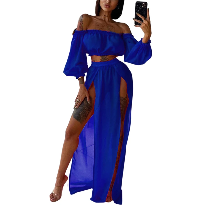 Комплект женской одежды, топ с открытыми плечами и длинным рукавом и прикрывающая юбка, костюм из двух предметов для путешествий, пляжного отдыха