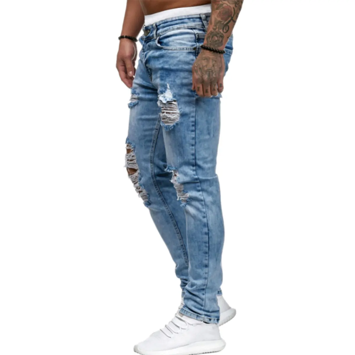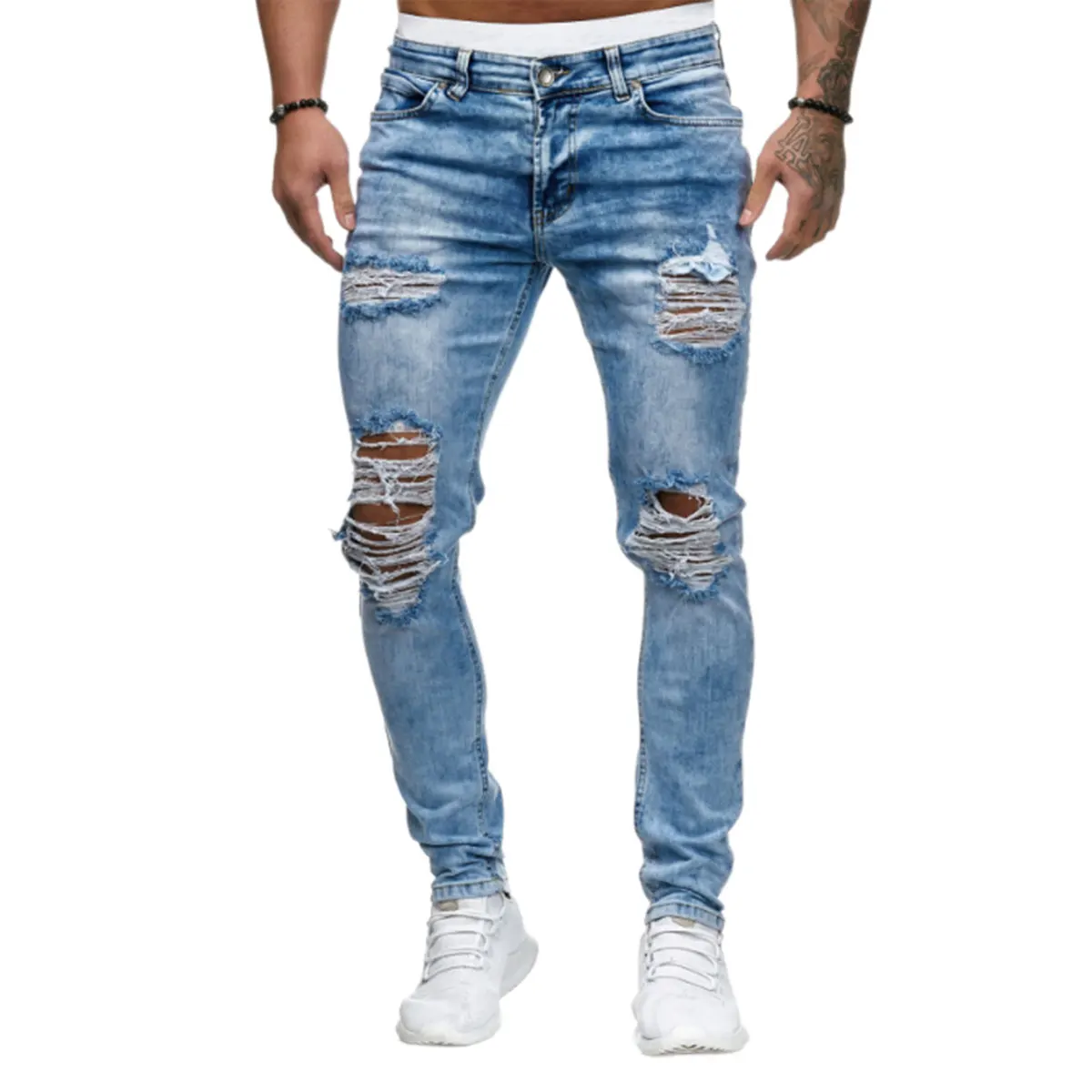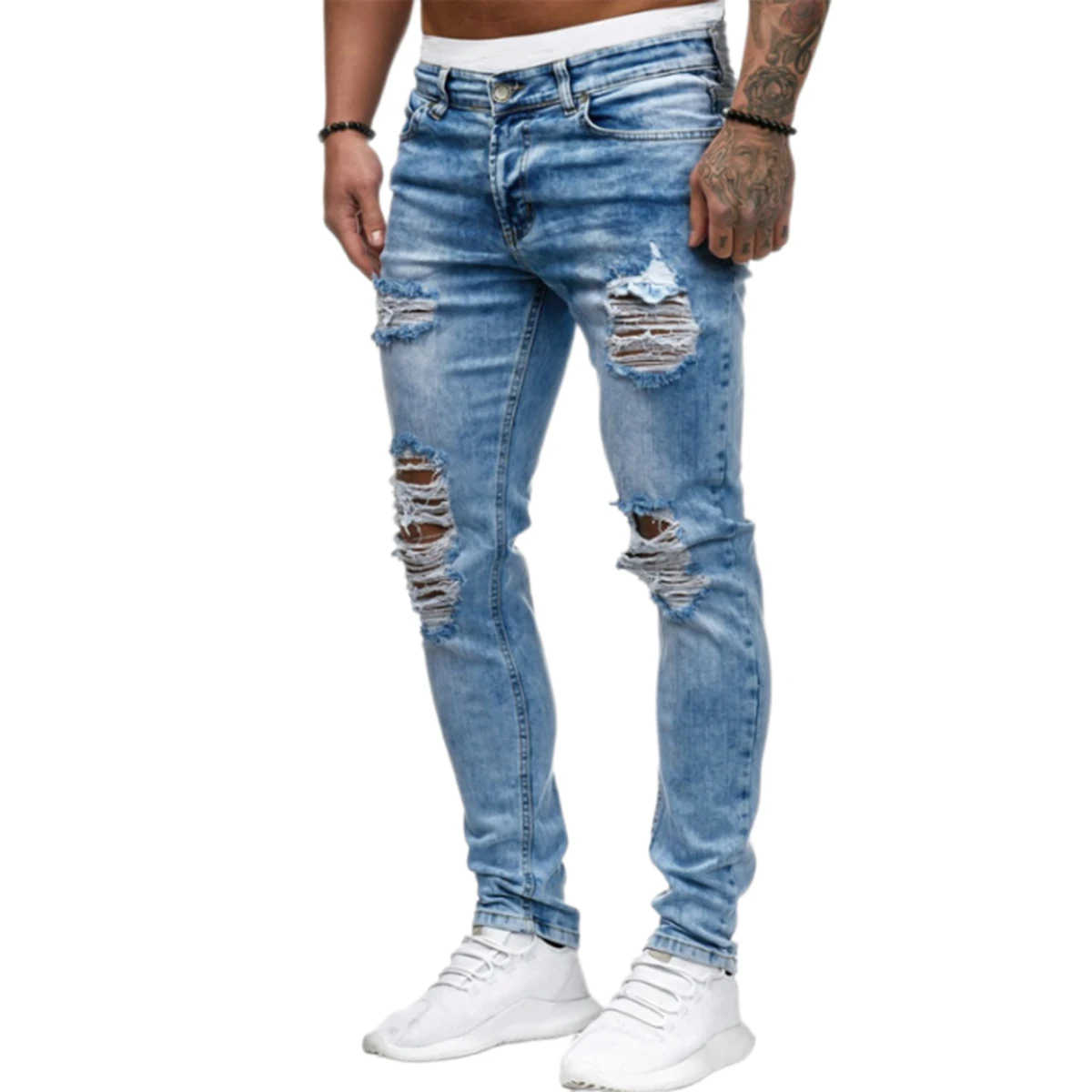 Брюки мужские спортивные, пикантные рваные джинсовые штаны, повседневные облегающие рваные брюки скинни, Байкерская верхняя одежда, лето-осень 2020