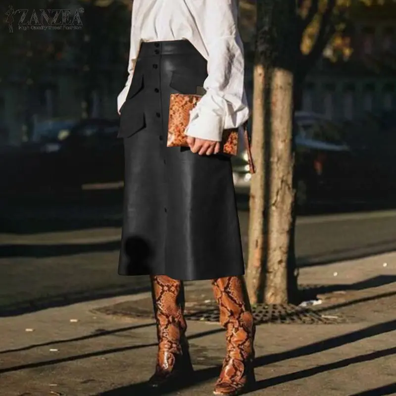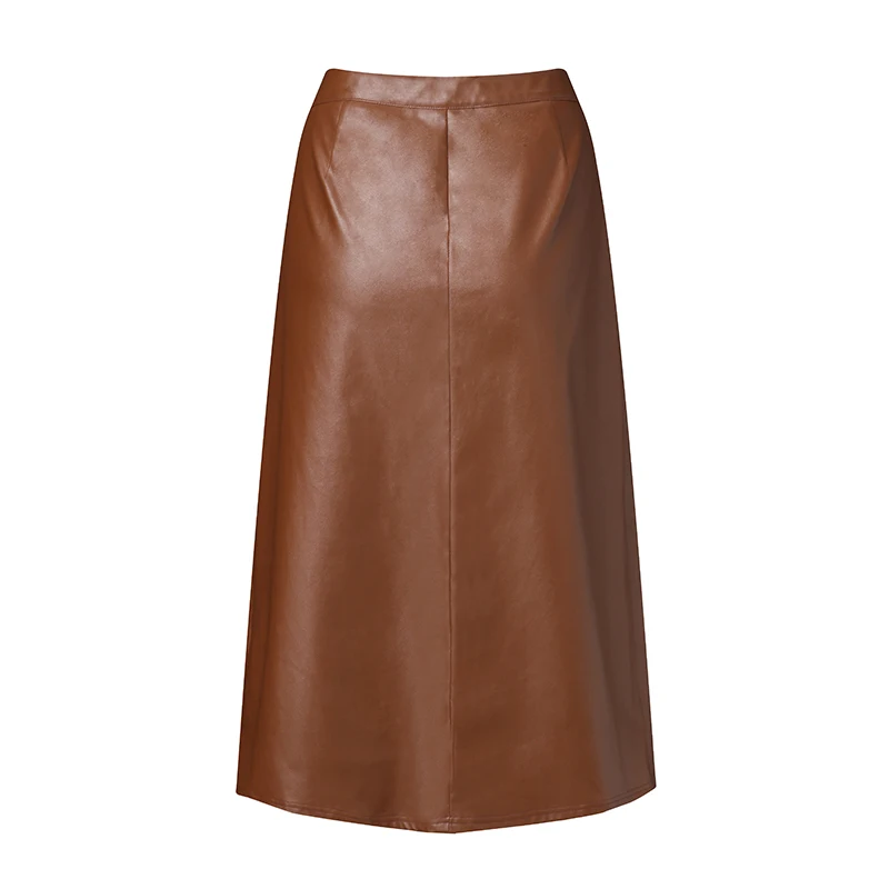Юбка женская из искусственной кожи, с разрезом спереди и карманами, весна 2021
