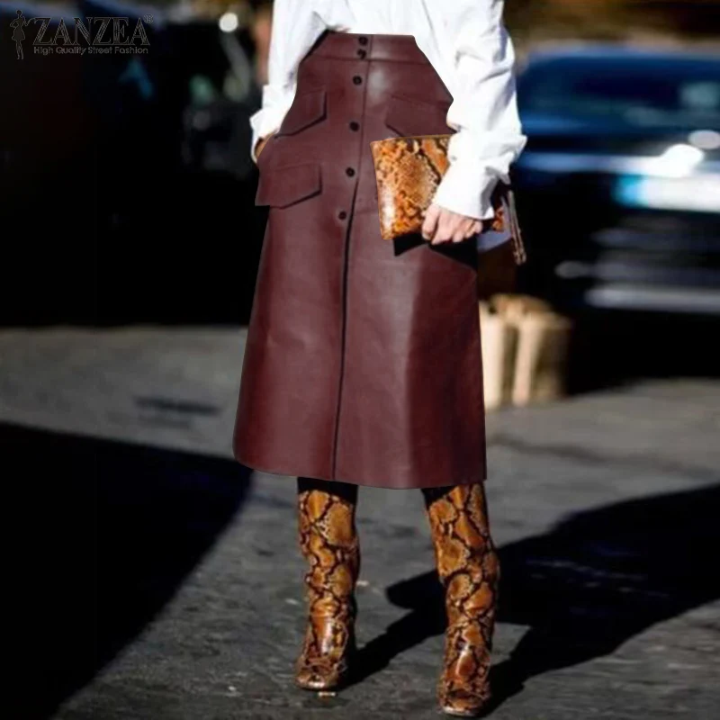 Осень 2021, длинная юбка ZANZEA, женские плиссированные юбки на мол...