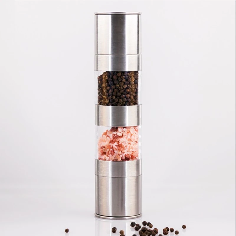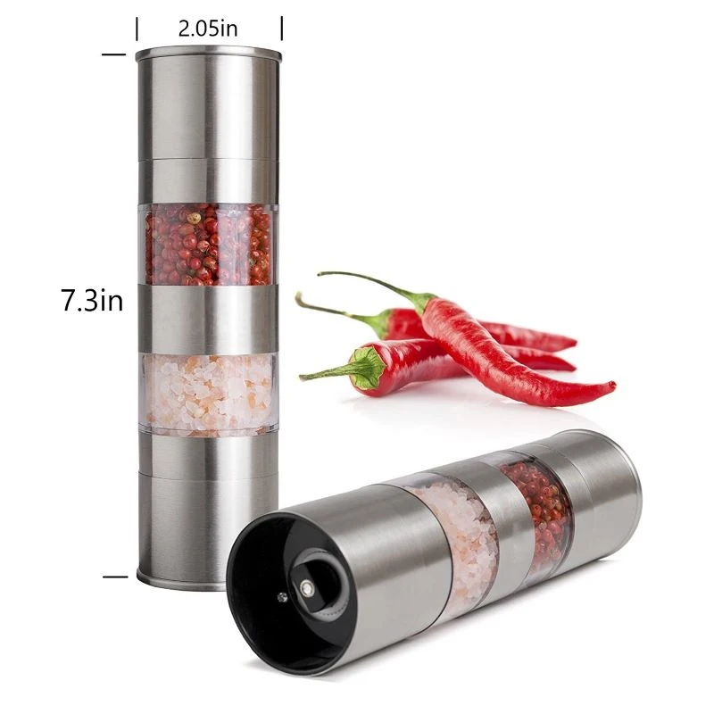Измельчитель для перца с двойной головкой из нержавеющей стали ручная мельница для перца 2 в 1, измельчитель для приправ и перца для приготовления пищи в ресторане