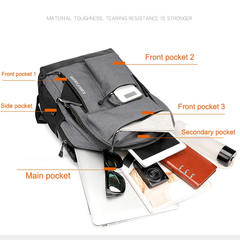 Рюкзак мужской, из ткани Оксфорд, с несколькими карманами и USB-портом