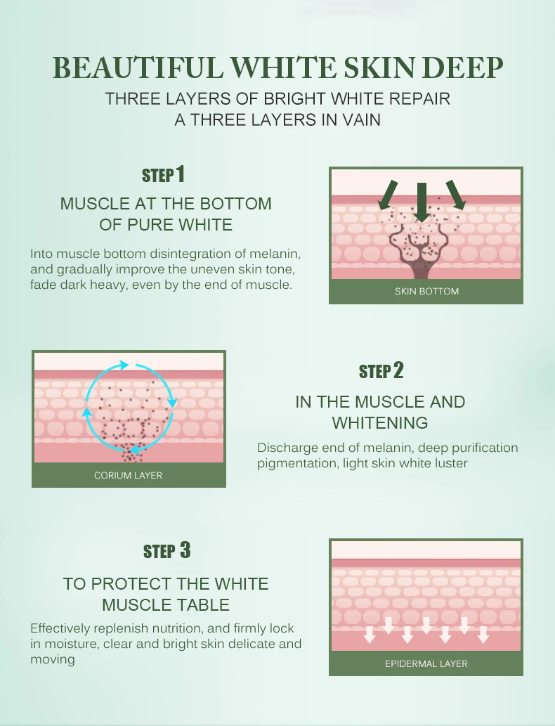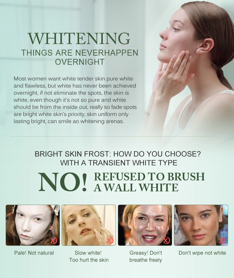 Функция продукта: кожа становится ярко-белой и прозрачной блестящей, четкая текстура не липкая, легко наносится, после использования кожи тусклая кожа чувствует себя комфортно, решает проблемы от источника атаки, кожа становится чистой и яркой!