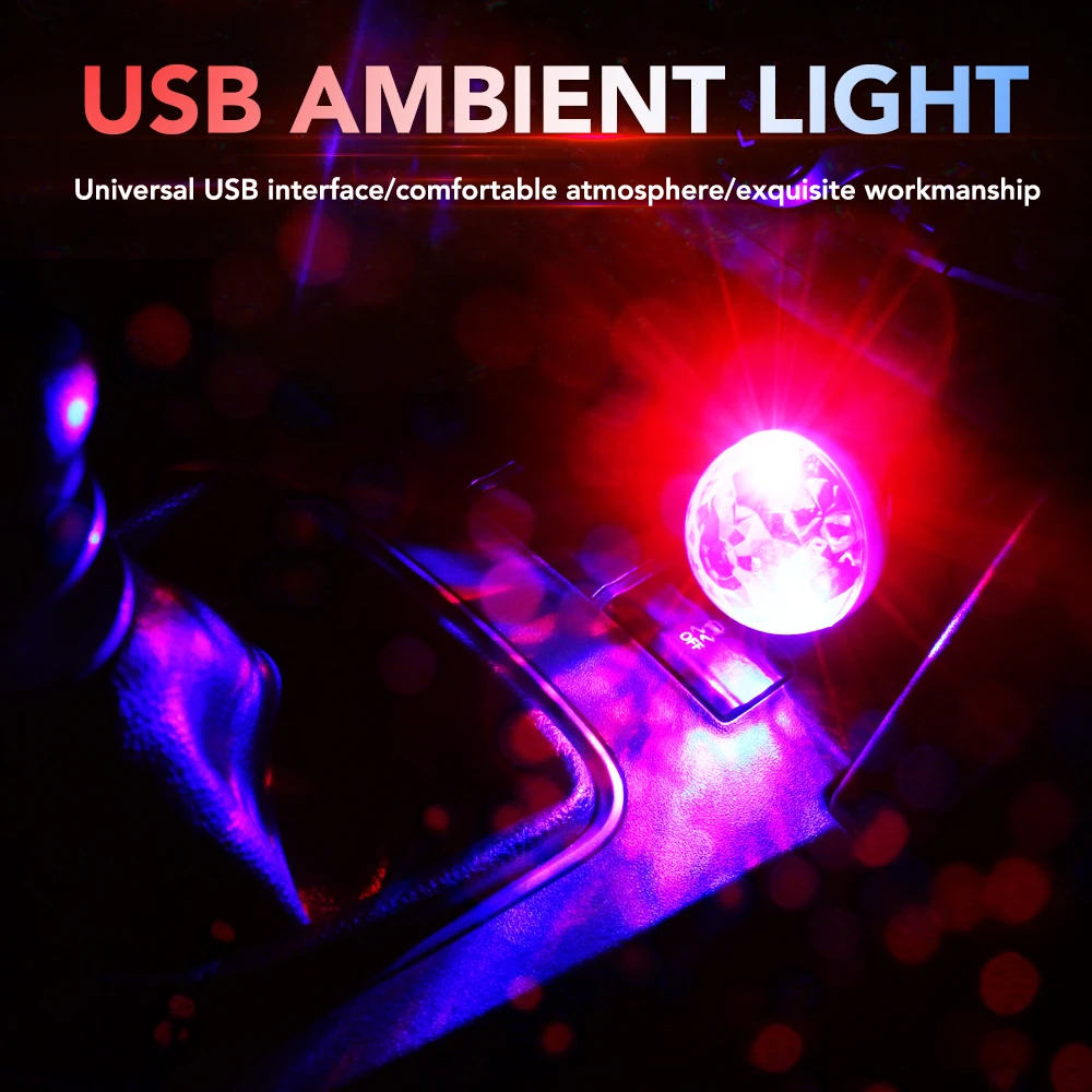 Автомобильная лампа с USB-разъемом, разноцветный диджейский мини-св...