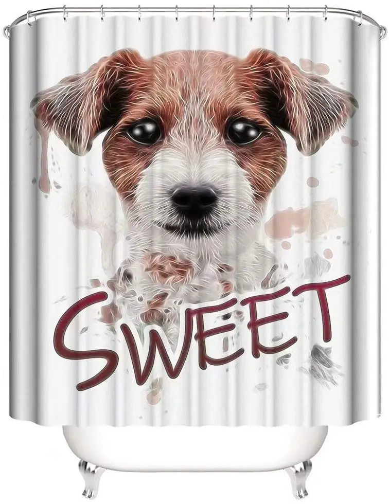 Украшение для рисования. Собака. Занавеска для душа. Аксессуары для ванной комнаты. Водонепроницаемый. Содержит 12 крючков. Кольцевой крючок для занавески в душе. Bac