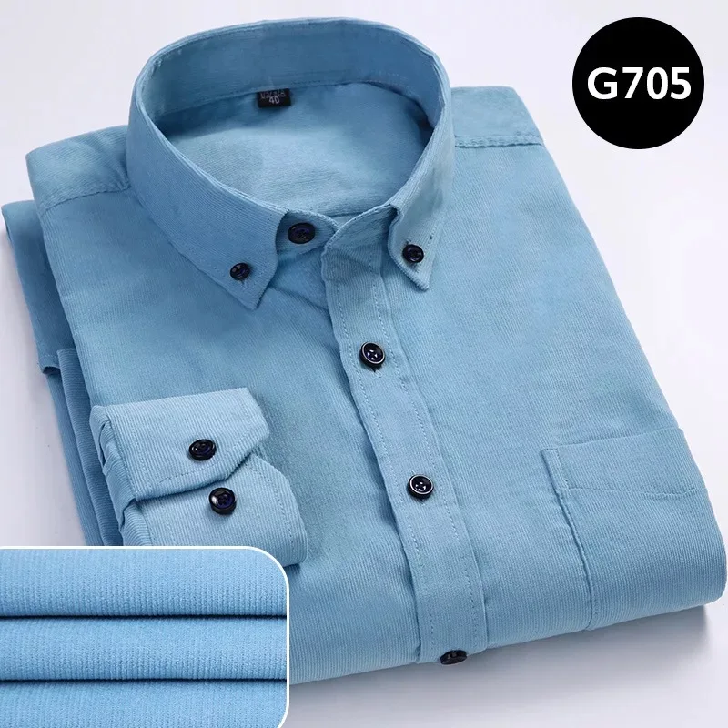 Новинка осенне-зимние теплые вельветовые рубашки из 100% хлопка с длинными рукавами и отложным воротником на пуговицах в стиле смарт-кэжуал