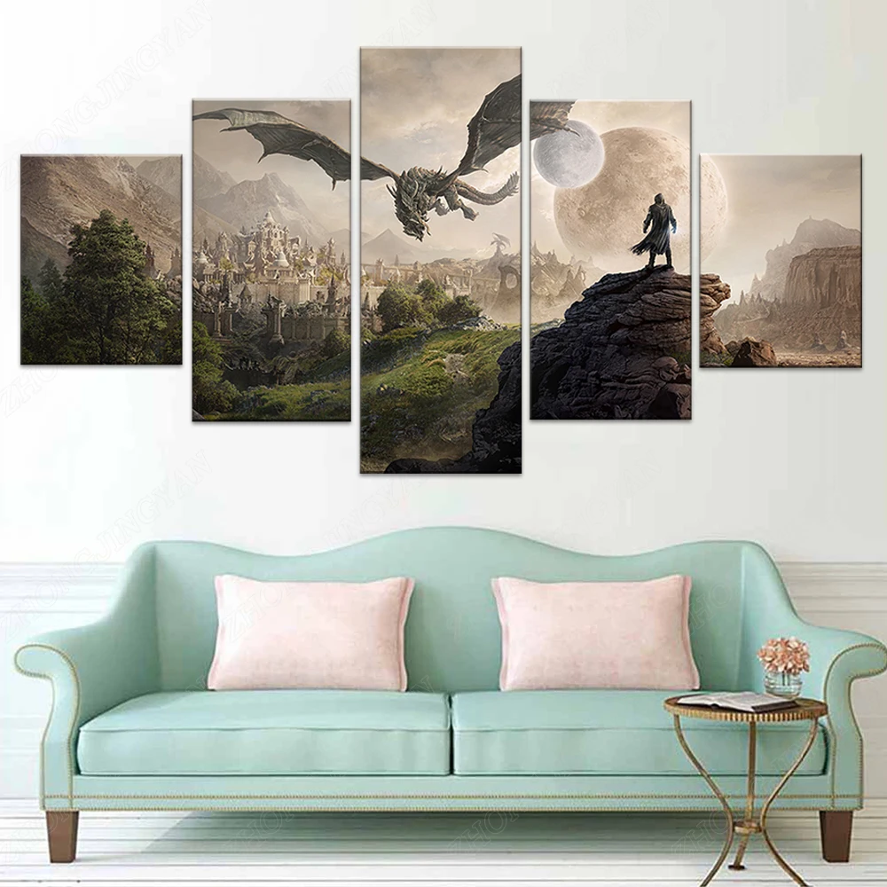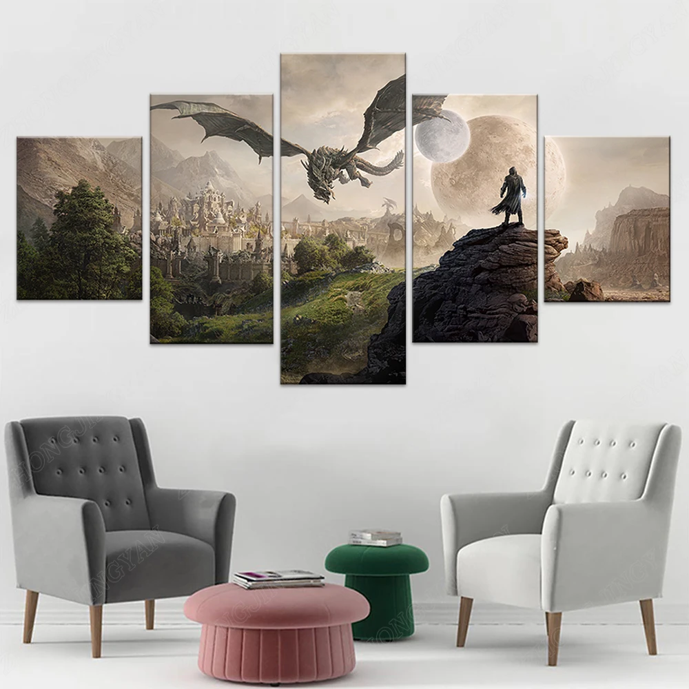 Модульная Картина на холсте для домашнего декора, 5 шт., картина из свитки для старшего возраста, 4 игры Skyrim, плакат на стену для дома, холст, подвесная картина для интерьера