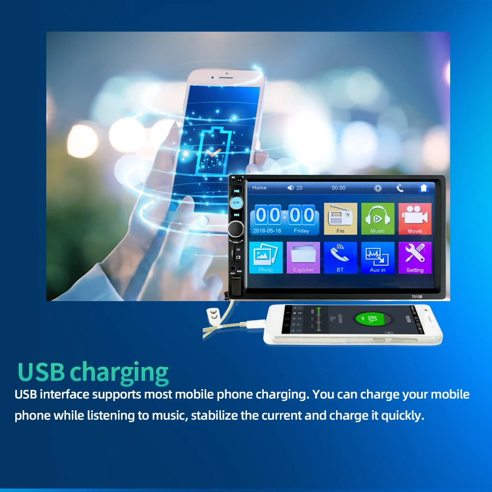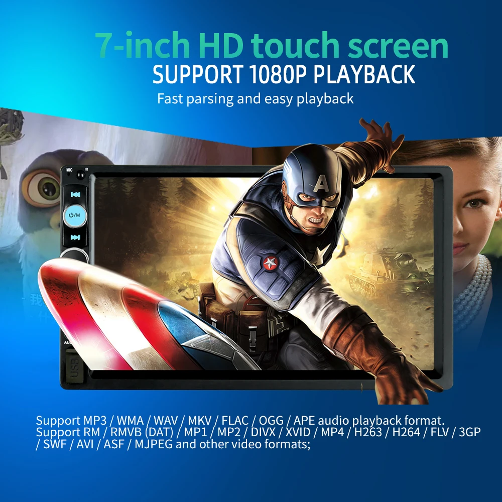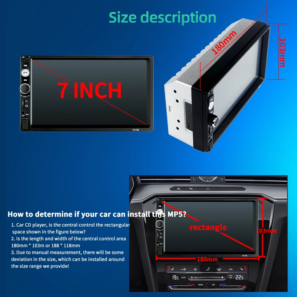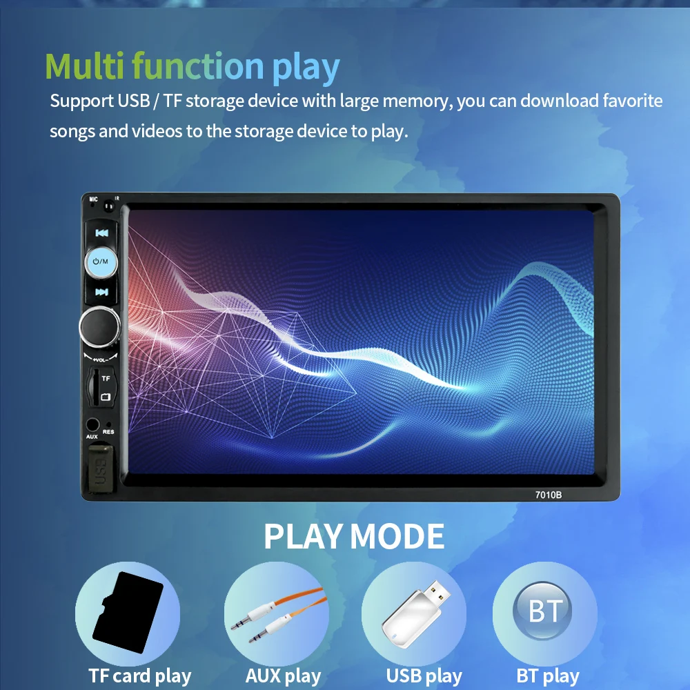 Автомобильное радио 2 Din HD 7 "Авторадио мультимедийный плеер 2 DIN сенсорный экран Авто аудио Автомобильное стерео MP5 Bluetooth USB TF FM камера 7010B