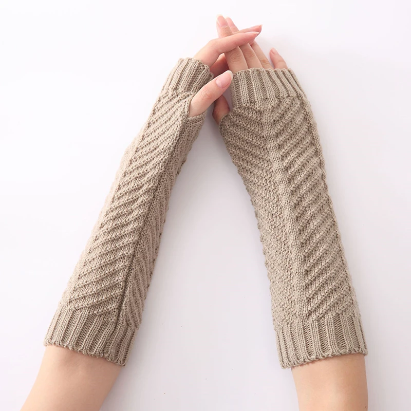 Перчатки женские вязаные шерстяные, однотонные, без пальцев, Осень-...