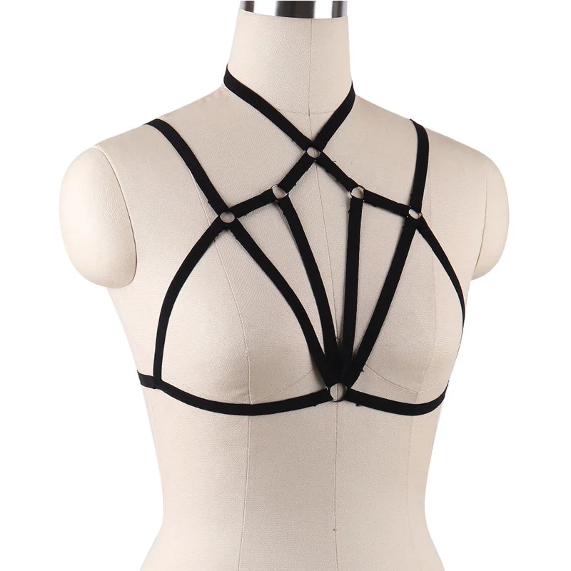 Сексуальная черная обвязка для тела, бондаж, женское эротическое нижнее белье, ремни, эластичные топы на бретелях, бюстгальтеры-клетки