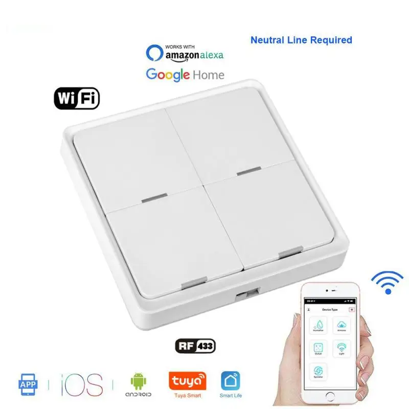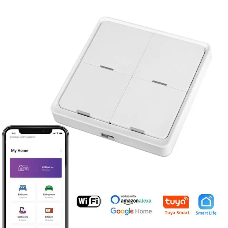 Умная электрическая Сенсорная панель переключателя, сенсорный выключатель, настенный светильник, настенная сенсорная панель управления Tuya ZigBee, 4-сторонняя панель с Wi-Fi
