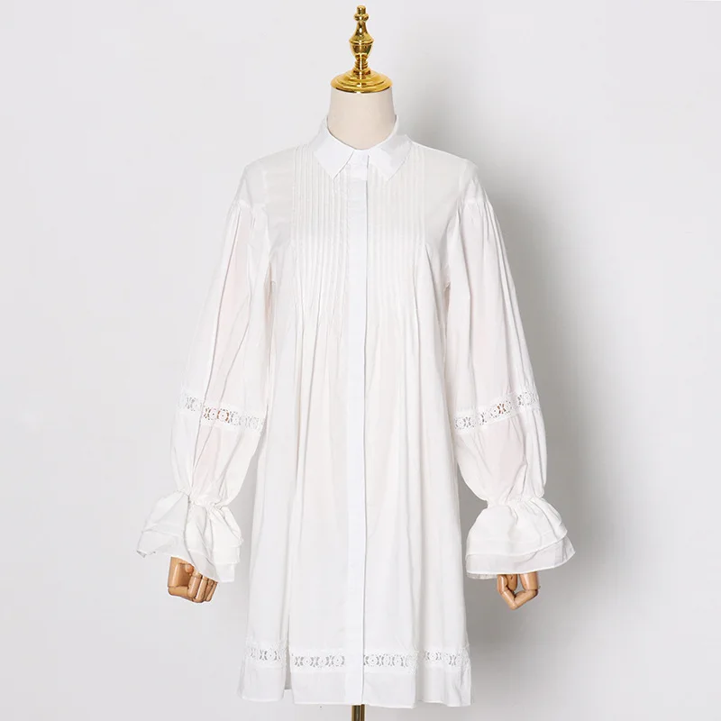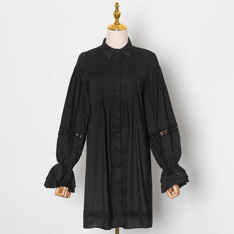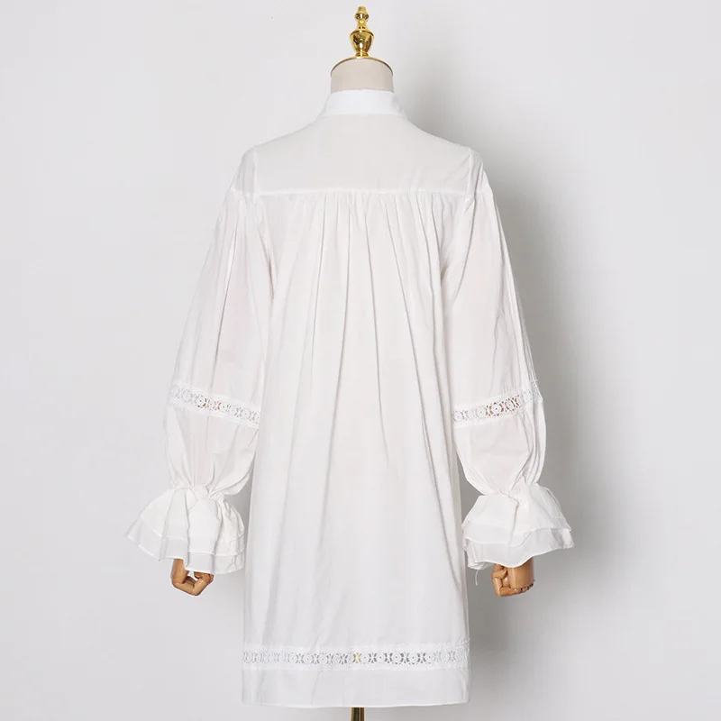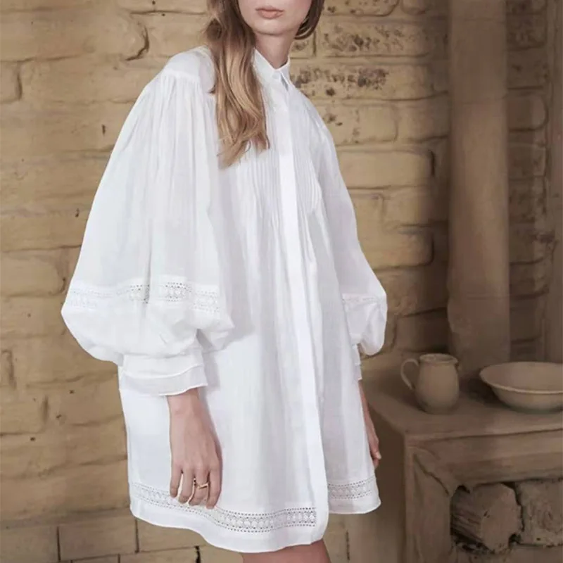 Женские Длинные Топы и блузки Johnature, однотонные ажурные рубашки с рукавами-фонариками для весны, 2021
