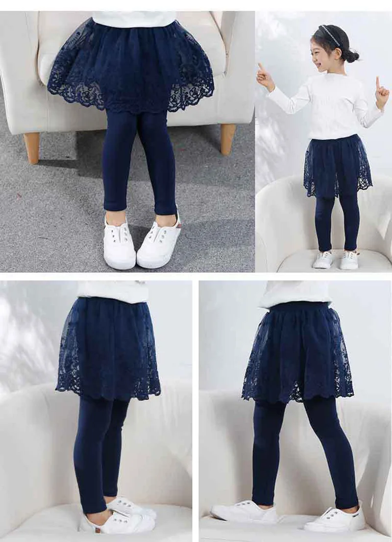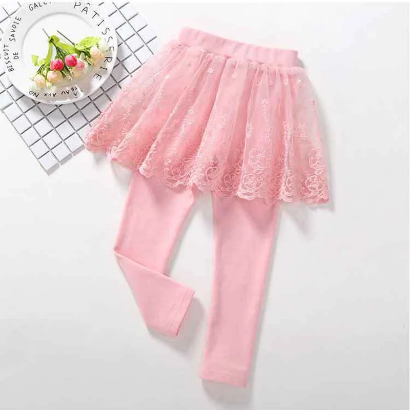 2021 хлопковые леггинсы для маленьких девочек кружевная юбка принцессы-штаны весна-осень, детская облегающая юбка, брюки, От 2 до 7 лет детская одежда