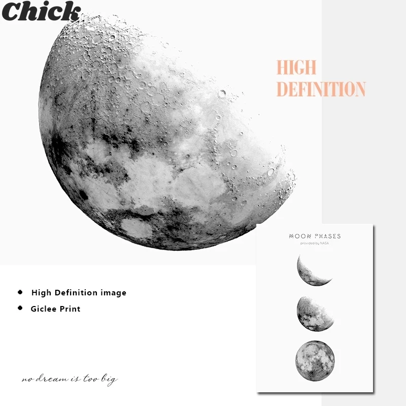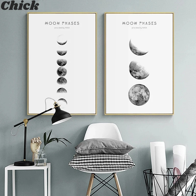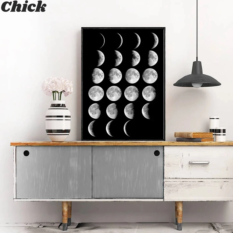 Плакаты и принты в виде Луны на холсте, минималистичное украшение Л...