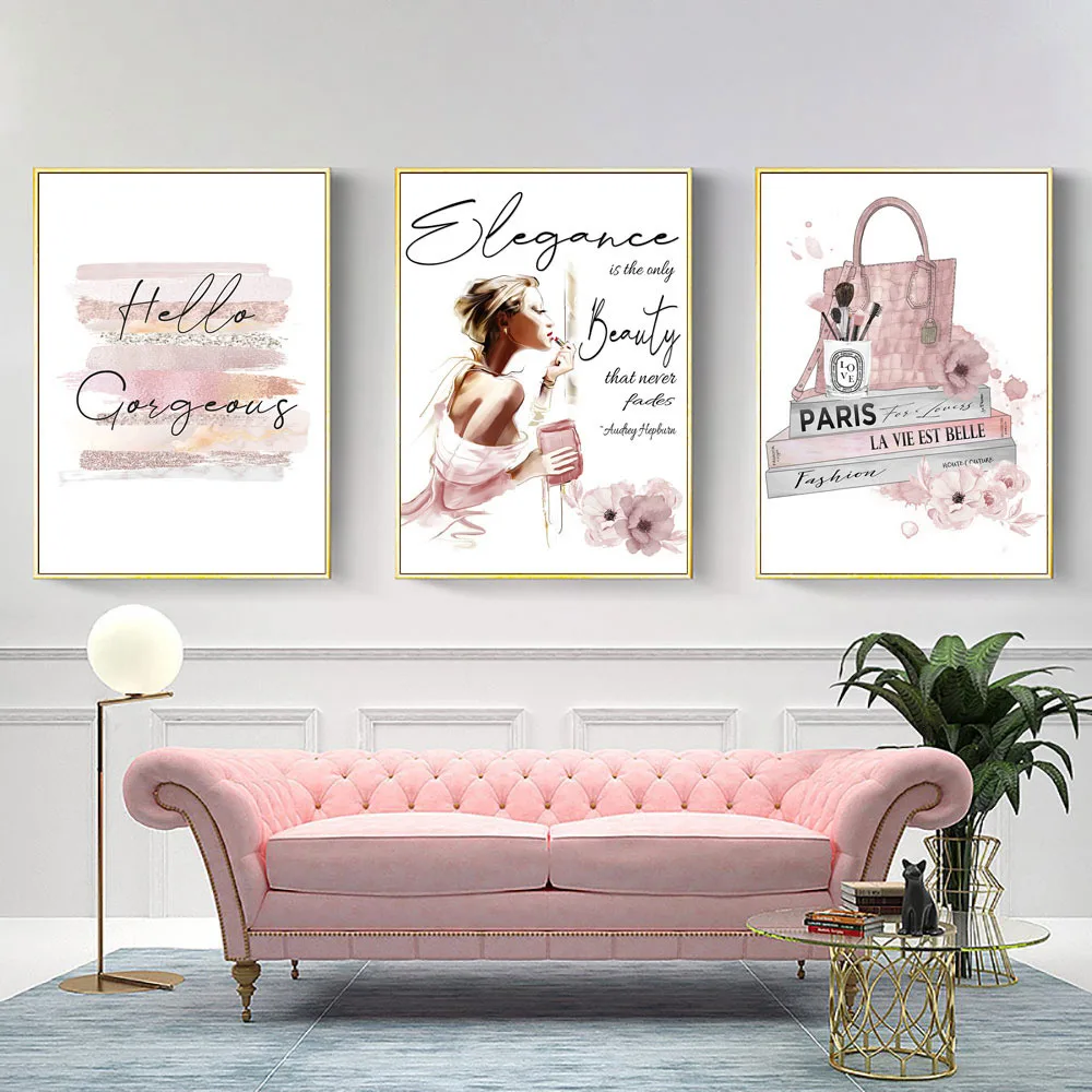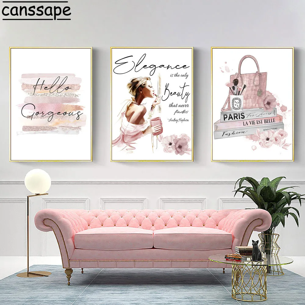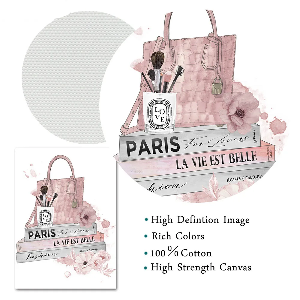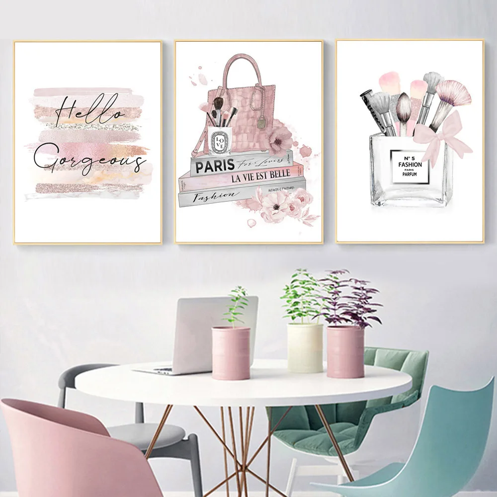 Розовая модная картина духов Парижские кисти макияж Холст Картина Vogue Book Nordic постер настенный художественный принт украшение для дома