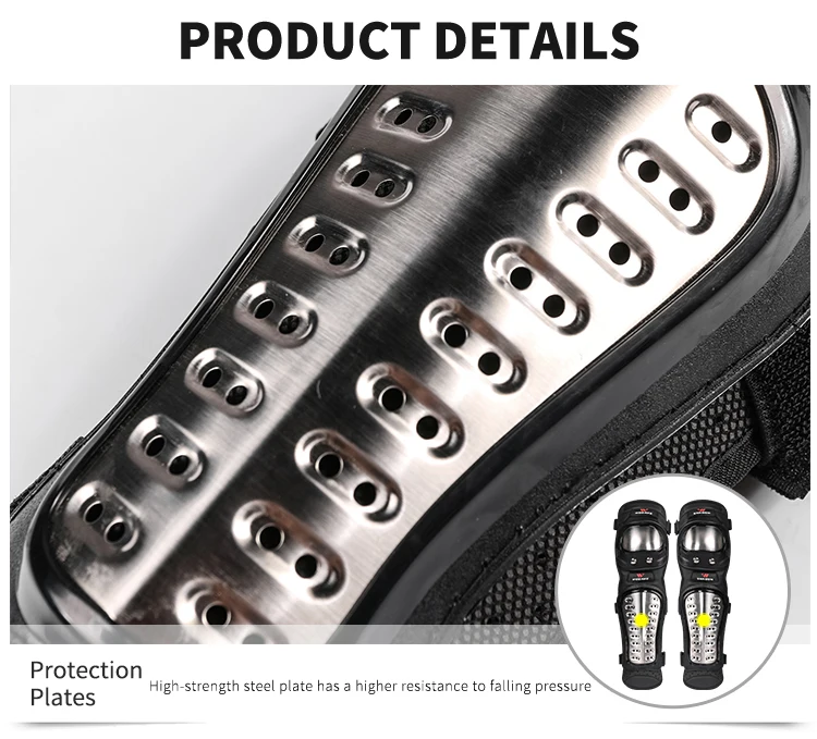 [Защитный слой из нержавеющей стали] --------------- высокопрочная стальная пластина имеет более высокую устойчивость к падению давления, отверстия в стали делают ее легче[Удобный и дышащий] --------------------- полный вентиляционных отверстий, очень хорошая вентиляция【 Высокопрочная лента --------------------- высокие фиксированные ремни крепятся на коленные суставы и не могут быть легко отсоединены. Вы можете отрегулировать эластичность в соответствии с потребностями[Удобная подкладка] -------------------------- использует впитывающий пот и тепло для удаления ткани, и это не знойный во время езды.[Фиксированные ногти] крепкие фиксирующие ногти надежно фиксируют протекторы коленного сустава
